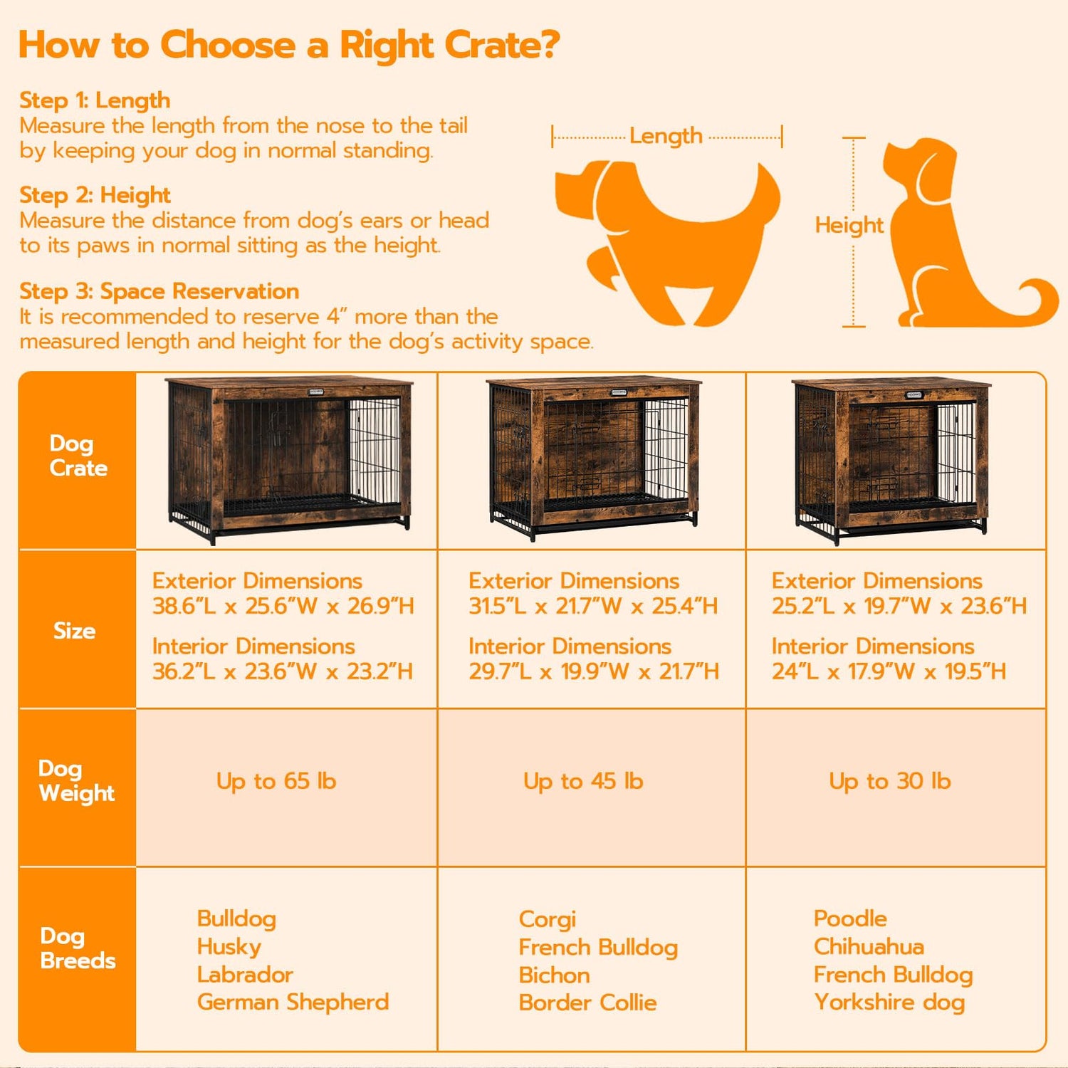 - Sturdy and Chew-Resistant: It is constructed of particleboard and steel, featuring easy care, strong stability and chew-resistance for pet-safe durability and long service life. We simplified assembly methods and steps and with numbered parts and comprehensible instructions, you can assemble this wooden dog crate easily