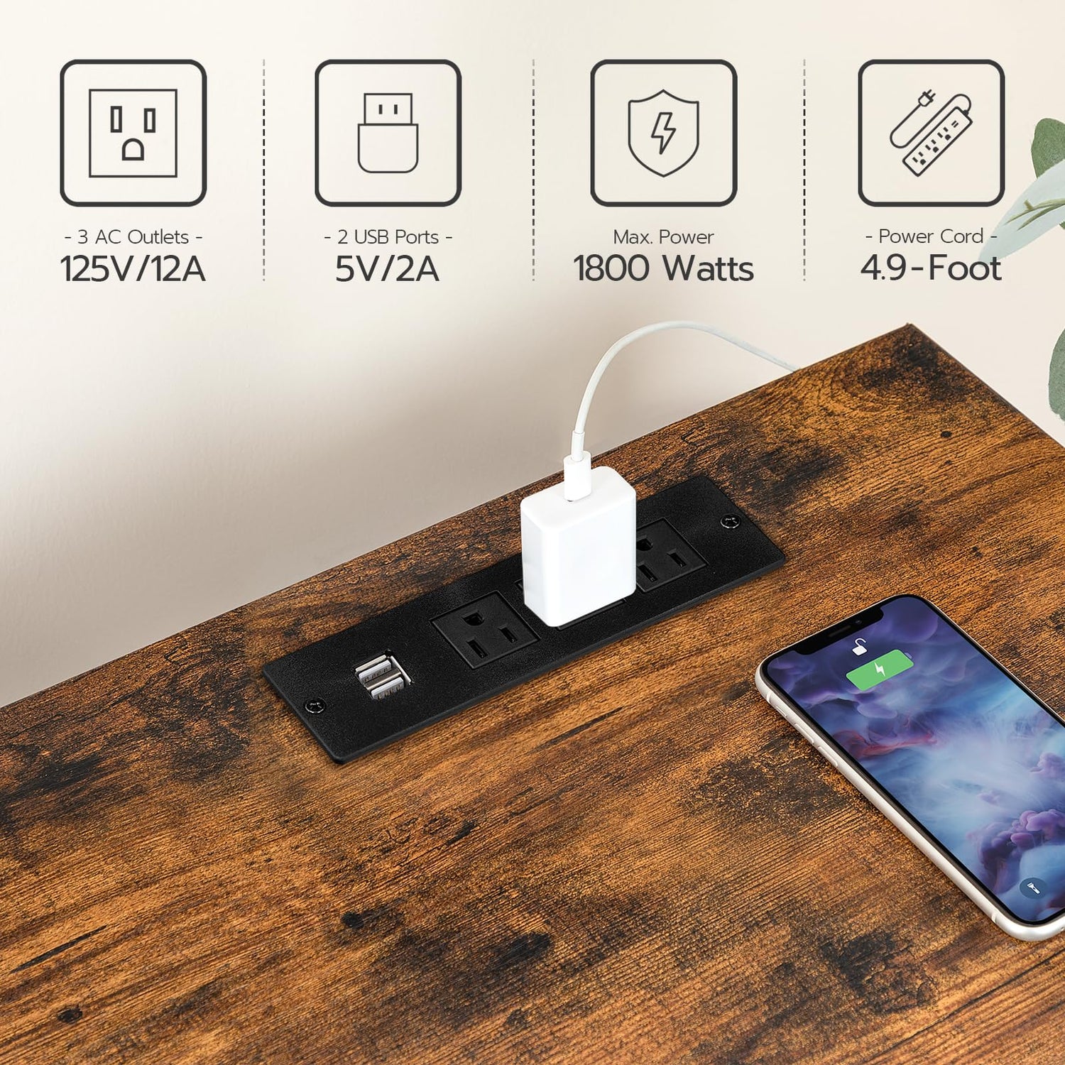 HOOBRO Fireplace TV Stand with Led Lights and Power Outlets, Wooden Media Entertainment Center Console Table with Glass Shelves, Fireplace TV Console for TVs up to 55", Rustic Brown BF120UDDS01
