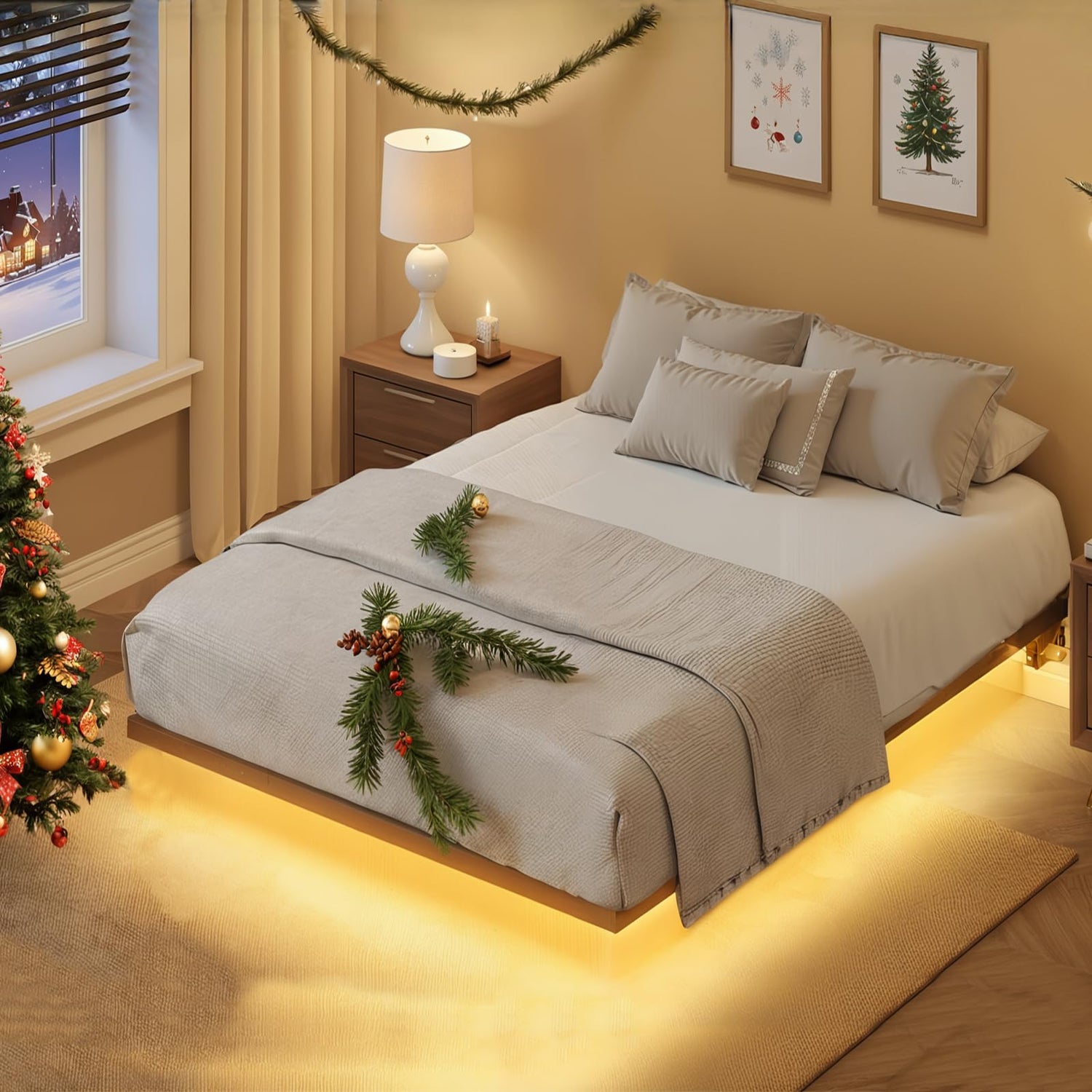 - Floating Bed Frame: Supported by nine internal legs on the main frame, this full size bed frame ensures stability and creates a visual effect of the bed floating in mid-air. The LED light strip under the bed enhances the modern aesthetic, casting a subtle glow
