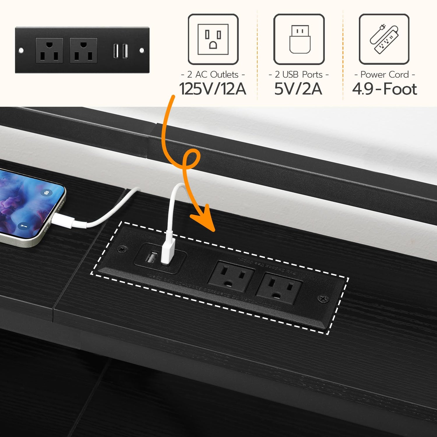 - Headboard Power Supply: The king size headboard includes a socket with 2 outlets, 2 USB ports and a 4.9ft power cord, so you can charge your phone or tablet without worrying about low battery and the distance. Just plug in when you are in bed