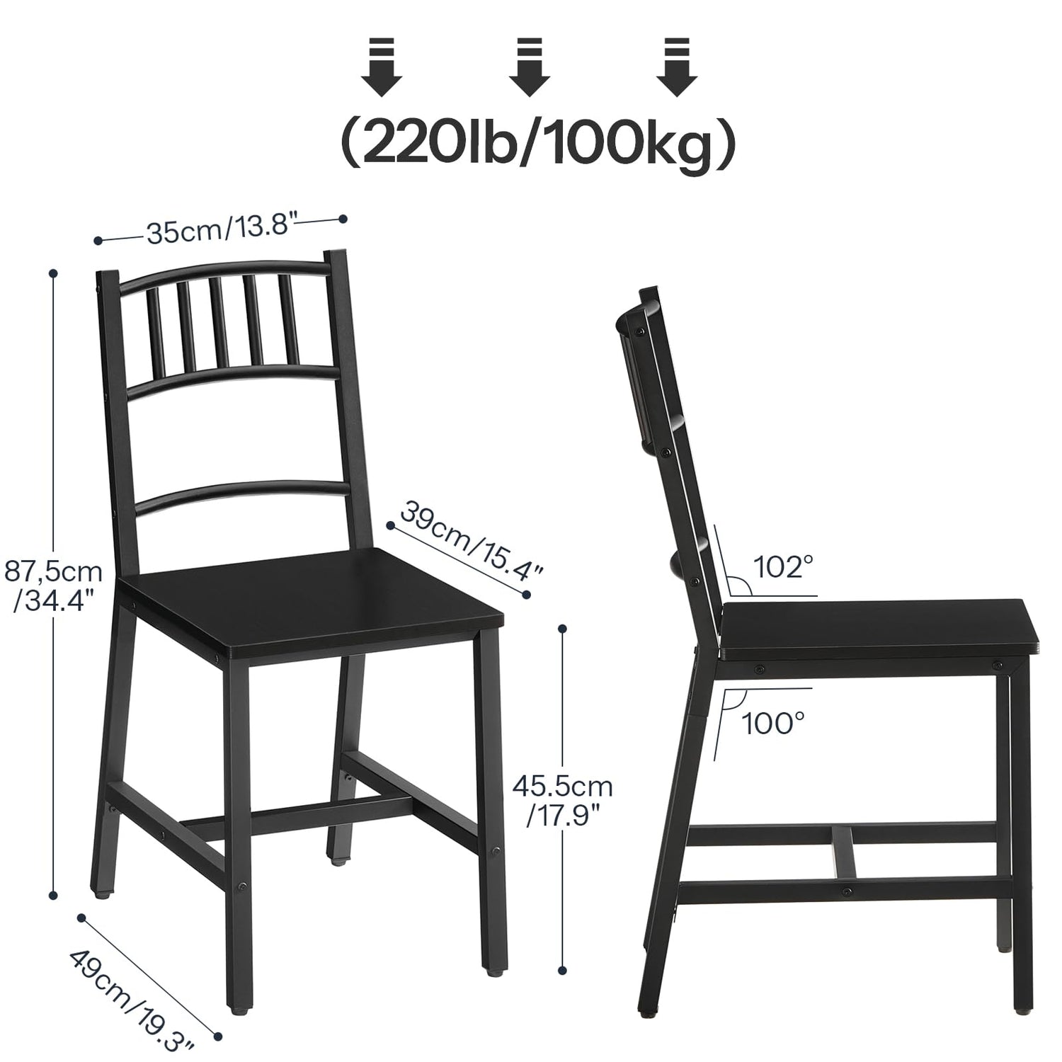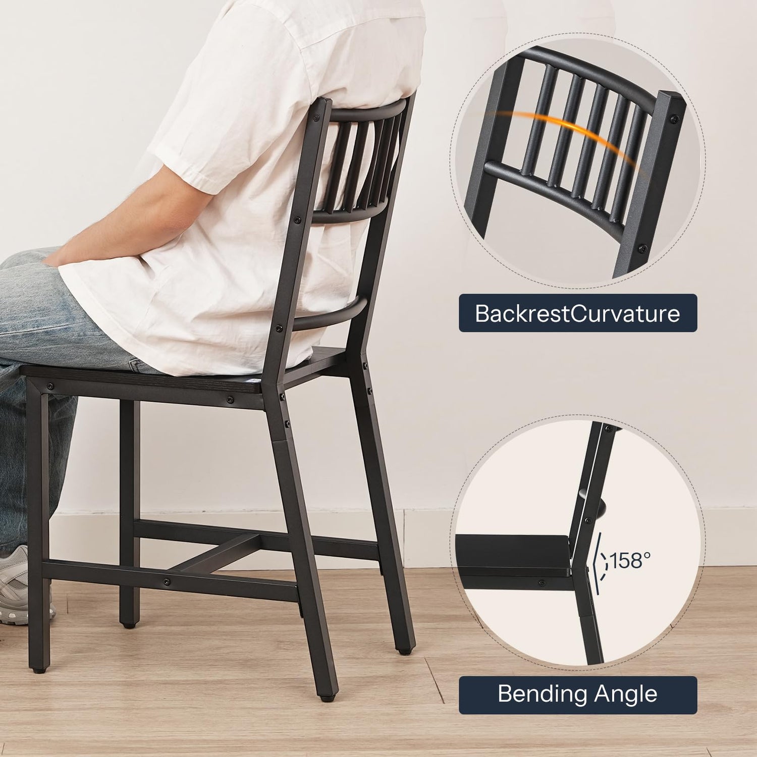 HOOBRO Kitchen Chairs Set of 2, Wooden Dining Room Chairs with Metal Frame, Dining Chairs with Back, Easy to Assemble, Farmhouse Dining Chairs for Kitchen, Living Room, Black BB39CD01