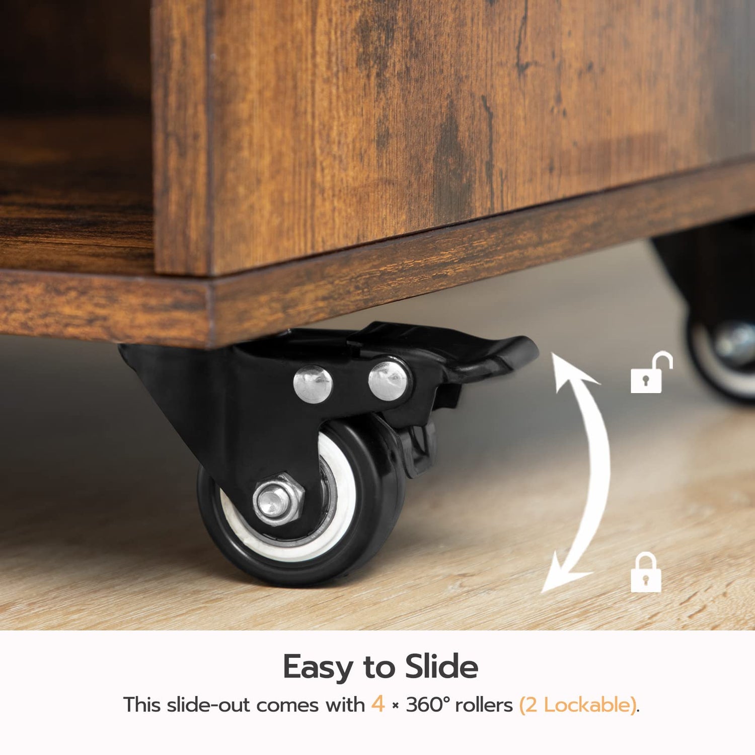 - Movable Kitchen Island: This island is equipped with 4 wheels (2 lockable). The kitchen cart can be placed anywhere in the house, and the side armrest can help you move the island more easily. Of course, the island can also be firmly locked in one position