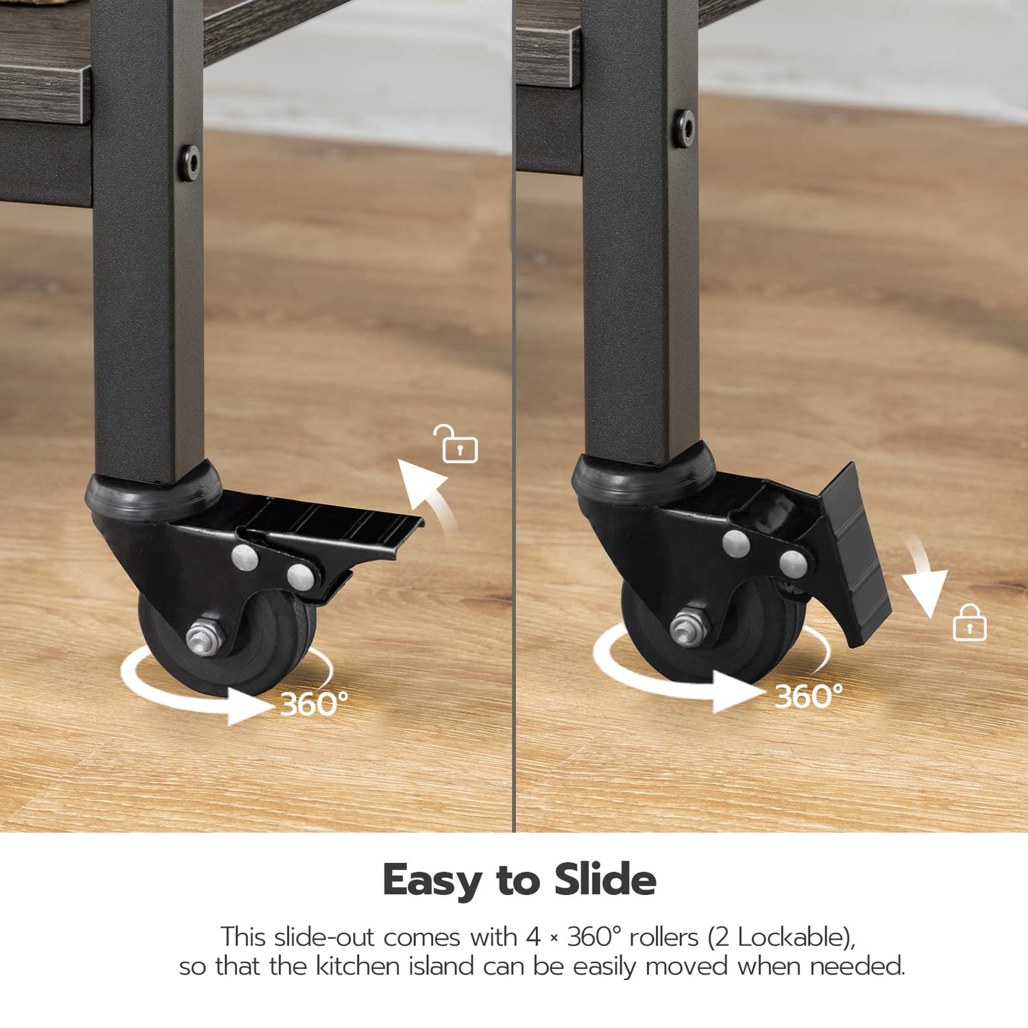 - Moveable Cart: The kitchen island cart is equipped with 4 industrial casters and side handles. It can reach any place with only a light push, without the need to move the island platform. Equipped with brake casters, the island platform can also be fixed in place, so there is no need to worry about shaking