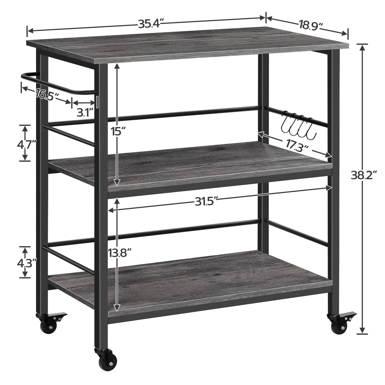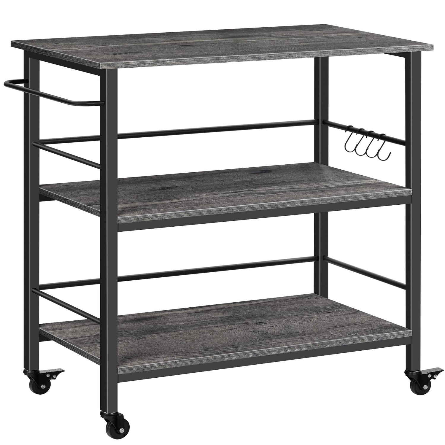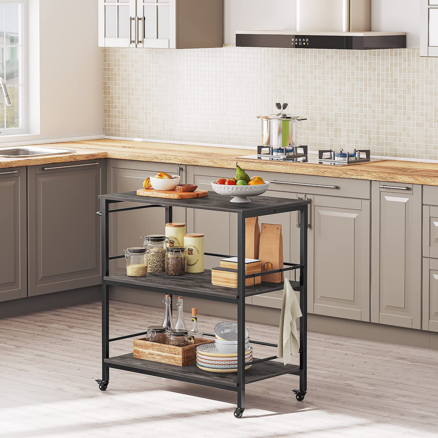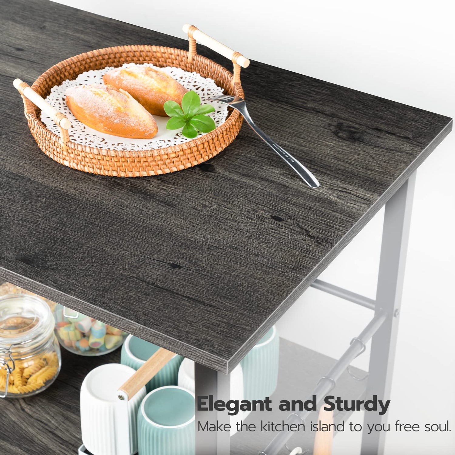 HOOBRO Kitchen Island with Storage,Industrial Kitchen Island on Wheels and Side Enclosures, 3 Tier Kitchen Cart with Large Workstation, Stable, Easy Assembly, Charcoal Gray and Black BC03ZD01