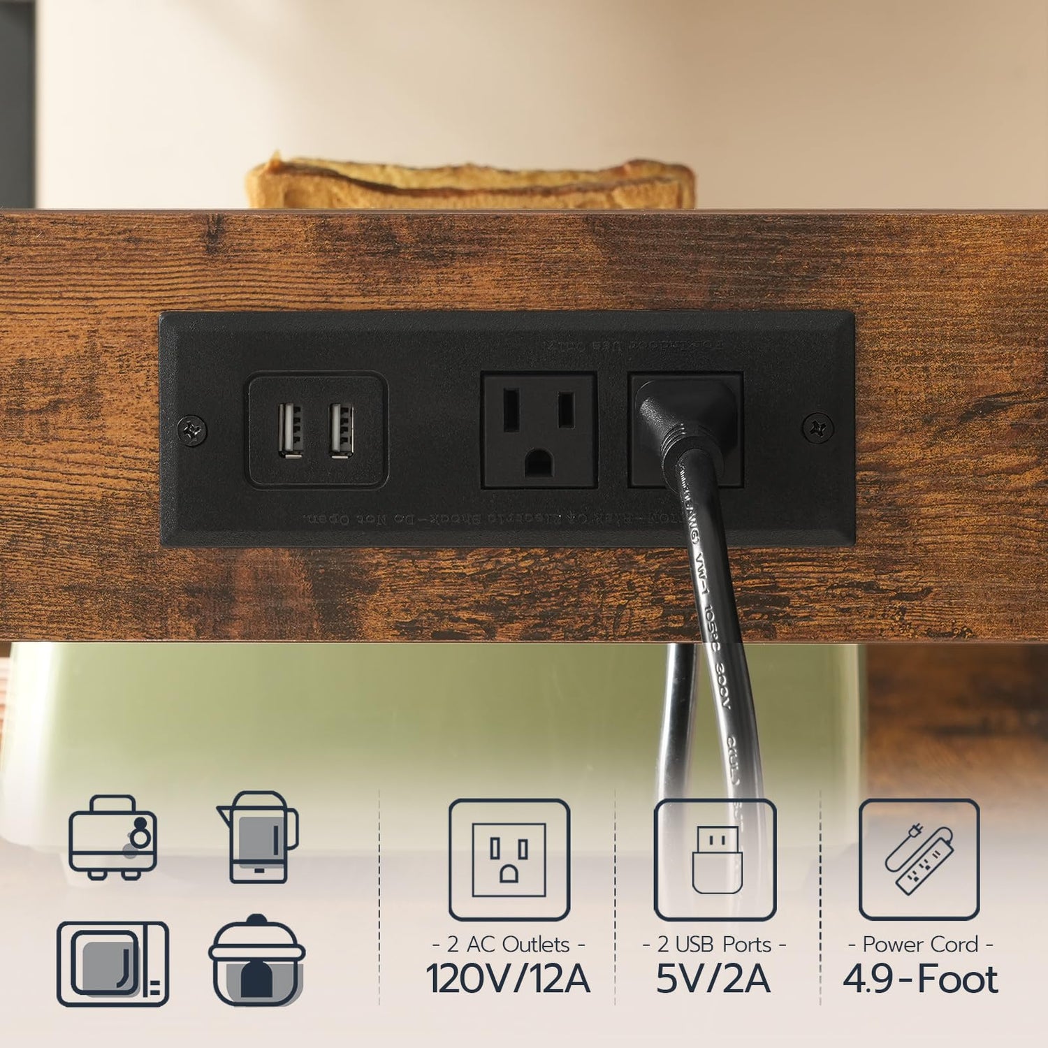 - Kitchen Island with Power Outlet: The kitchen island table is outfitted with a socket including two AC outlets and two USB ports to simultaneously charge multiple kitchen appliances. The 4.9-foot-long power cord ensures convenient and free access to power supply