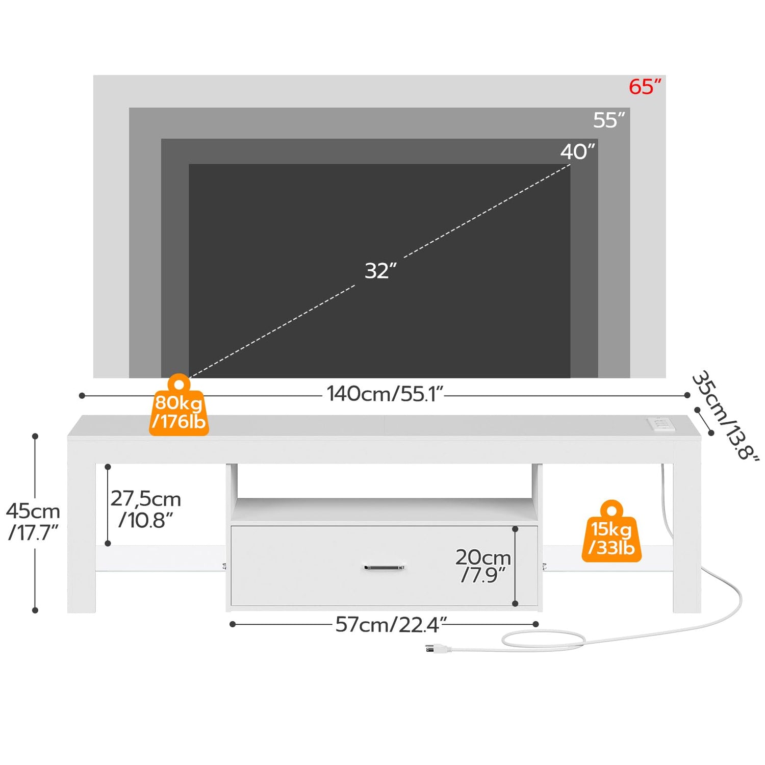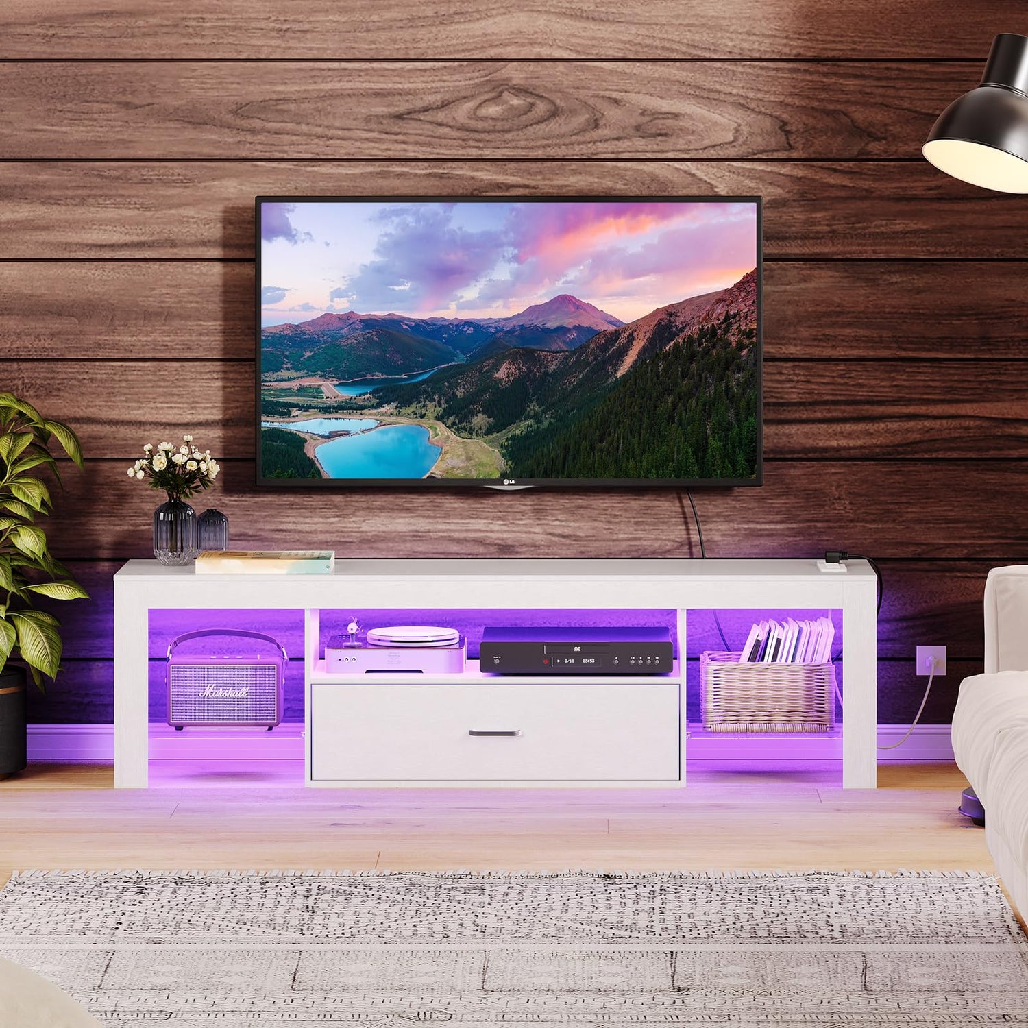 - Thoughtful Design: Our LED TV stand is equipped with high quality and durable drawer slides. 8 furniture pads enhance the stability and protect floors from scratches. The detailed instructions and complete parts offer you an easy installation process