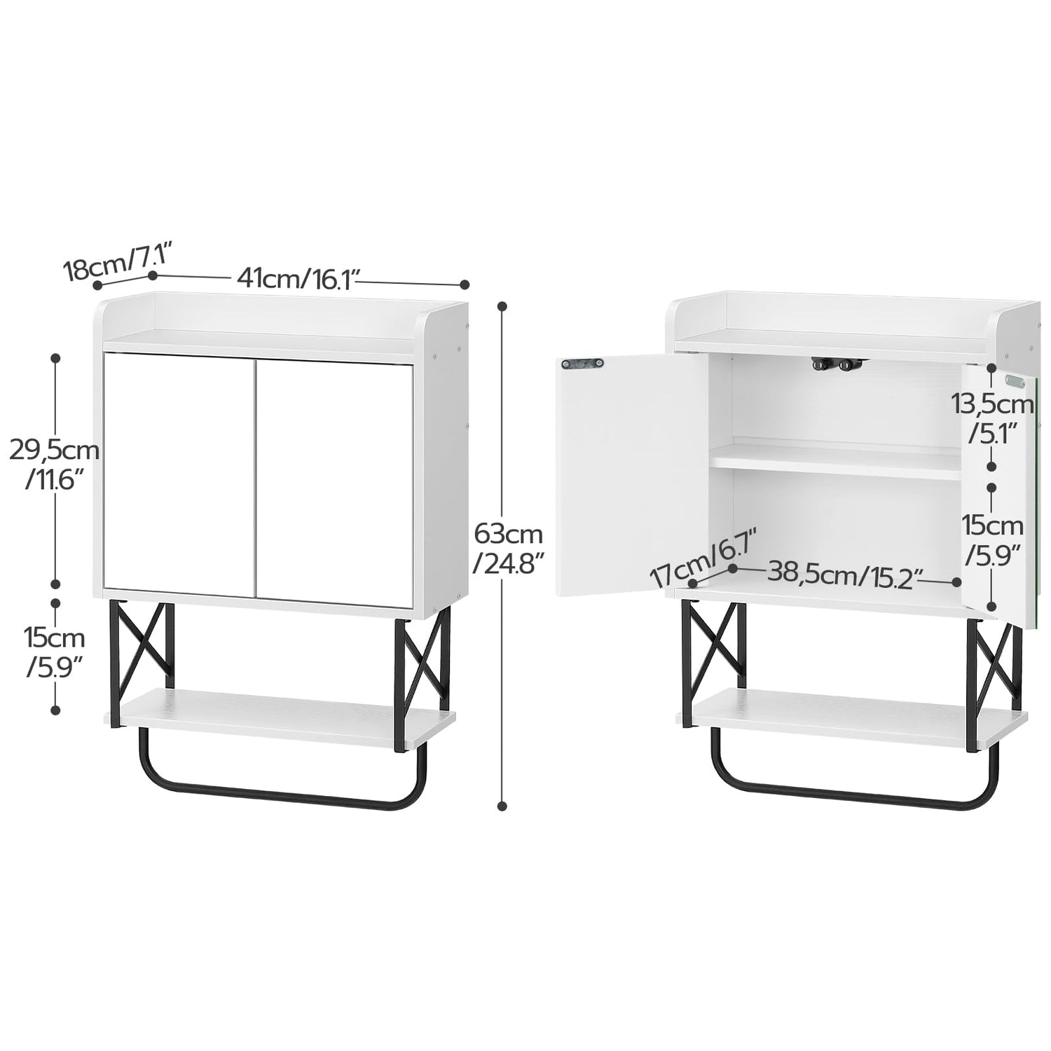 HOOBRO Medicine Wall Cabinet with Mirror, Bathroom Storage Cabinet with Hidden Space and Towel Bar, Double Mirrored Doors, Detachable Shelf, for Bathroom, Living Room, White BW41CW01