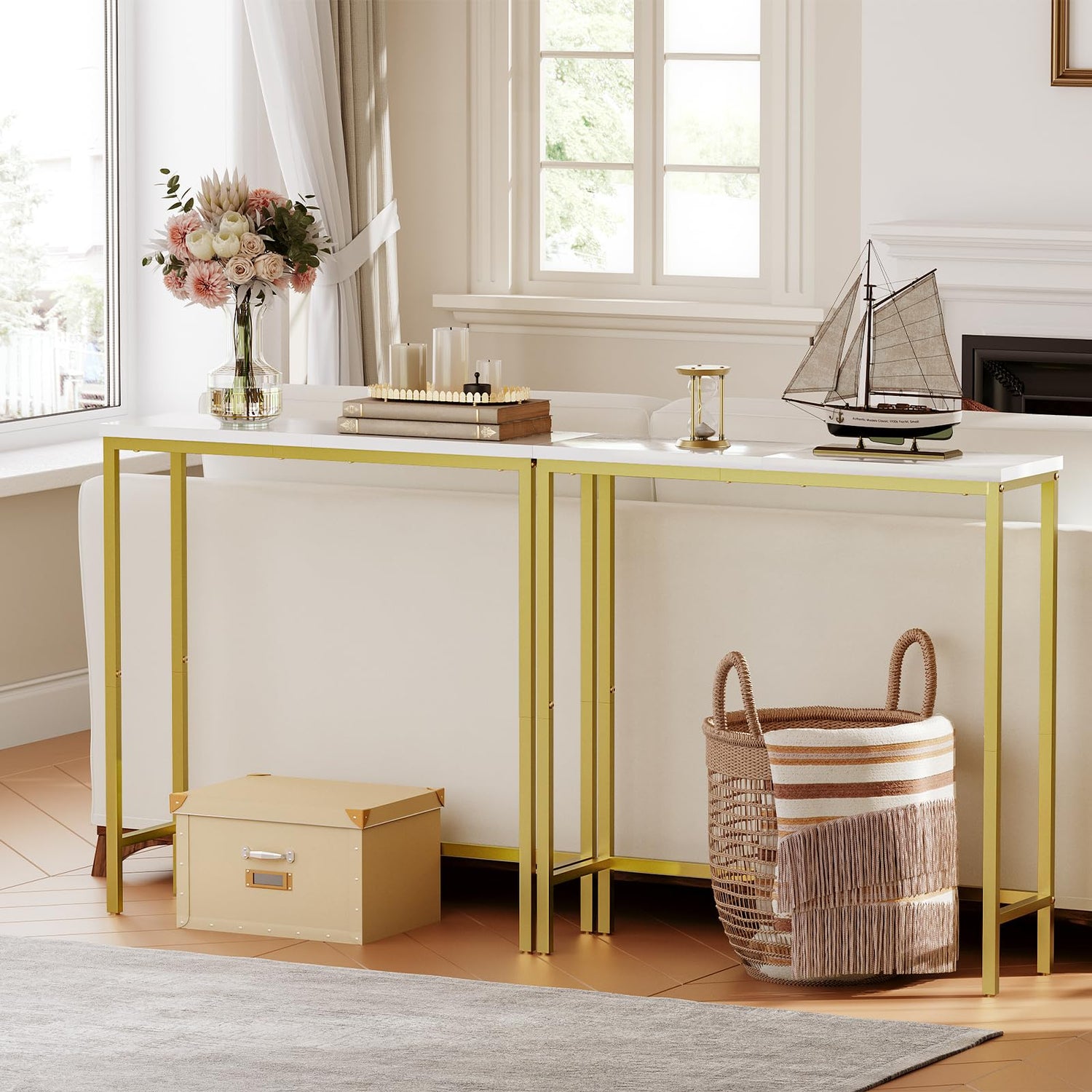 - Fashionable Look: Gold metal frame combined with white wooden panels can go well with many different colors, the console table making your study or bedroom more charming