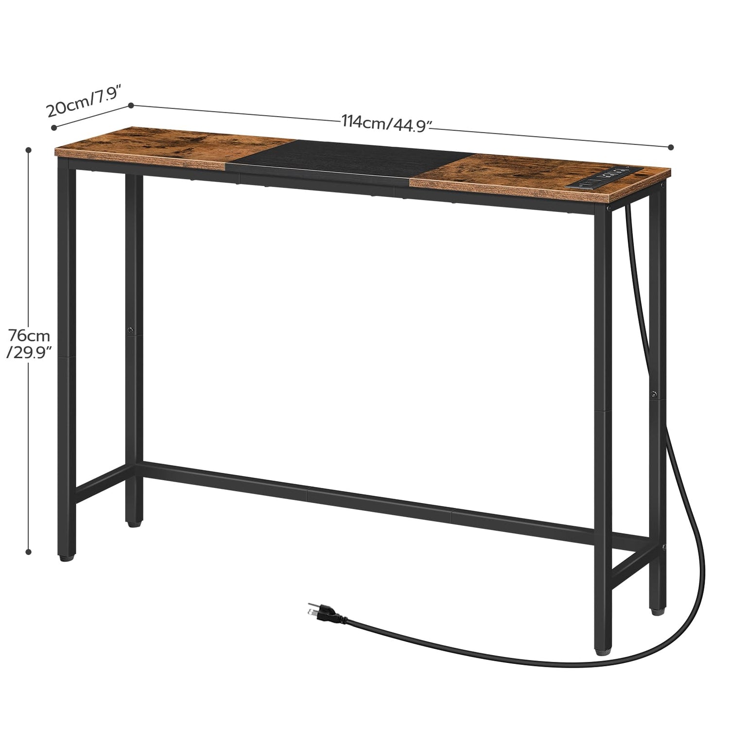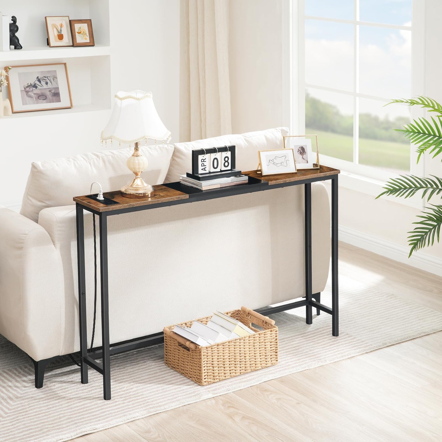 HOOBRO Narrow Console Table with Power Outlets, 44.9-Inch Sofa Table, Slim Behind Couch Table, Entryway Display Shelf, for Living Room, Foyer, Hallway, Rustic Brown and Black BF114UXG01