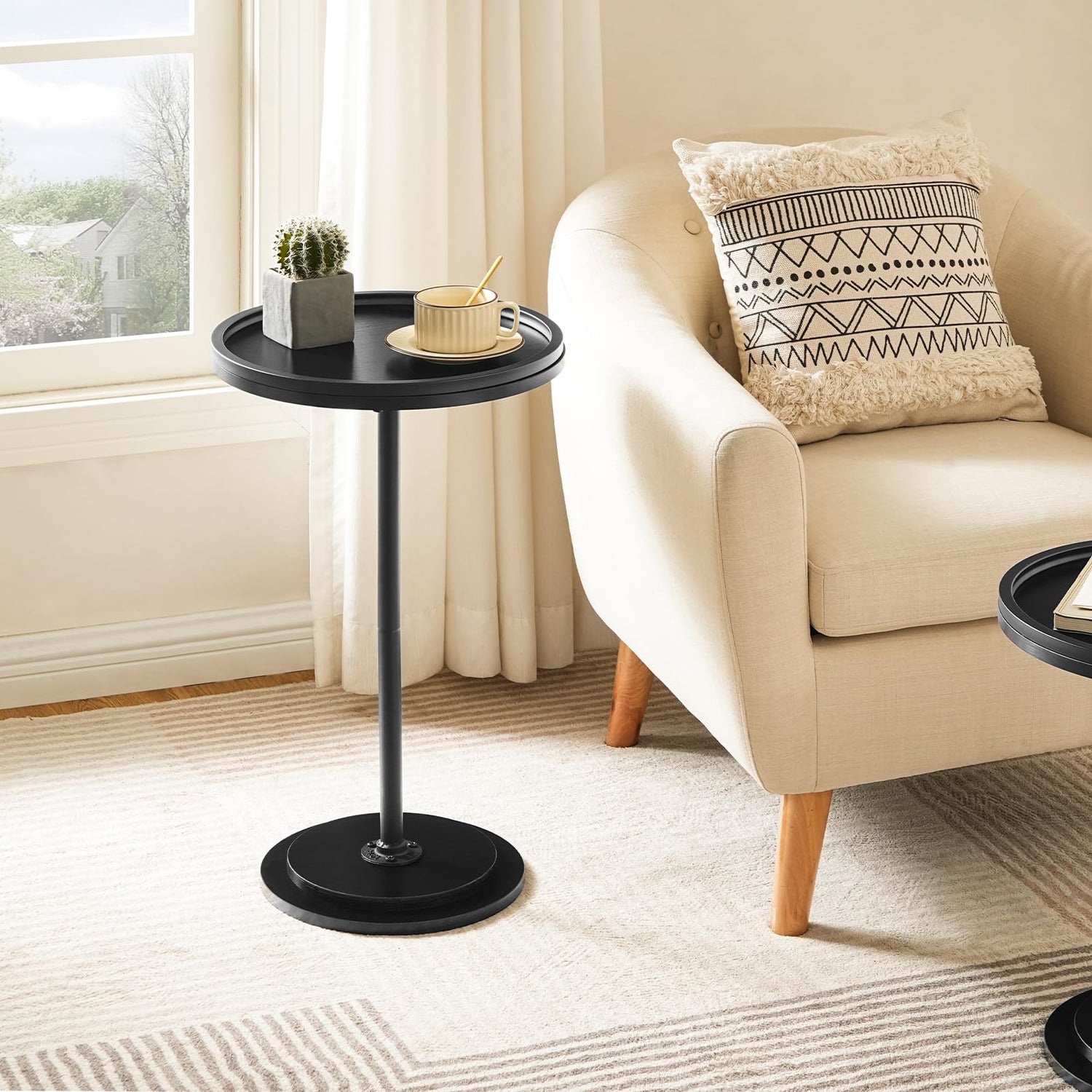 - Retro and Elegant: With a refined round shape and wooden pedestal, each round side table boasts a simple yet rustic design. The clean line aesthetic easily complements various home styles, adding a touch of unique charm to your living space
