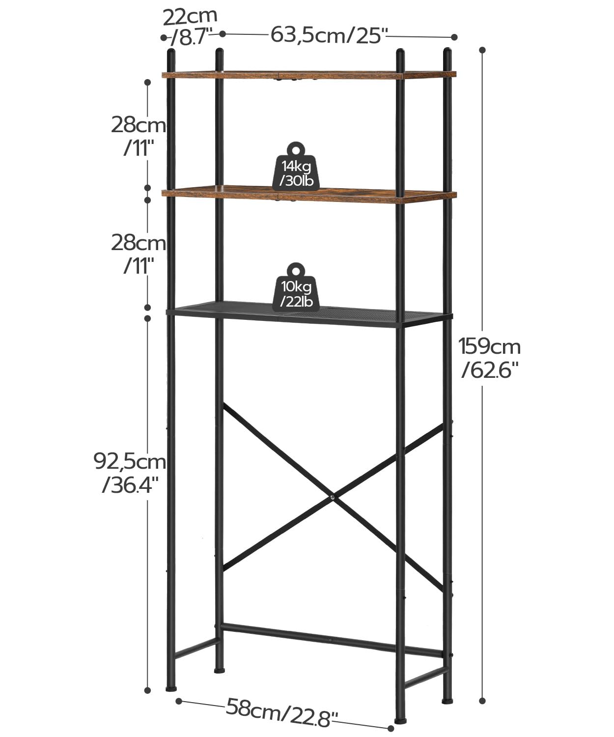 This bathroom storage shelf is specifically designed to fit over most toilets, making full use of the vertical space and offering additional storage options.With 3 open shelves, you can easily organize your bathroom essentials such as towels, toiletries and other accessories. The shelves are made of durable materials and can support a significant amount of weight, ensuring that your items are secure and stable.