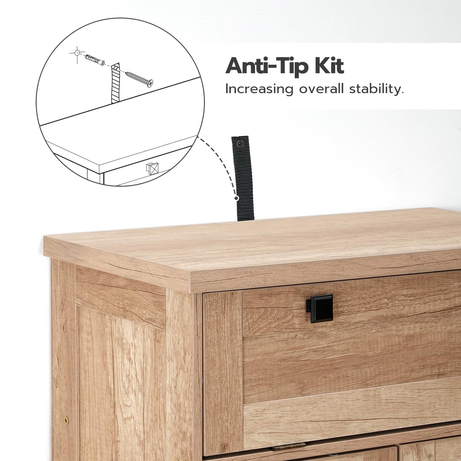 - Anti-Tip Kit: This farmhouse-style pantry cabinet is equipped with an anti-tip kit, ensuring that it won't tip over in case of external forces or accidents, thus protecting the items inside from damage or spills and letting you use it with confidence
