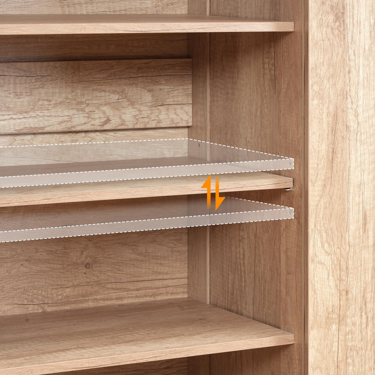 - Capacious and Flexible: The pantry cabinet has 4 shelves in the lower cabinet, and the middle shelf can be adjusted to 3 different heights, allowing you to customize and place items of various sizes, effectively meeting your diverse storage needs