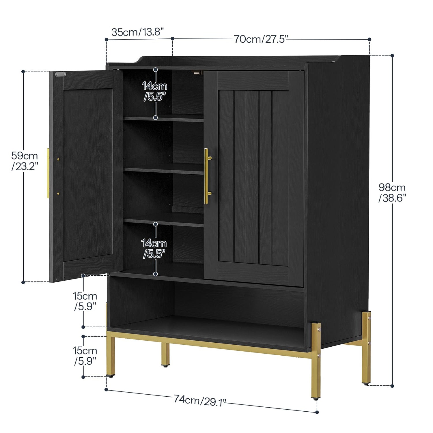 - Adjustable Shelves: This shoe organizer cabinet comes with 3 adjustable shelves, easily accommodating different heights and sizes of shoes and boots. With the ability to flexibly adjust the shelf spacing, you can personalize your storage space