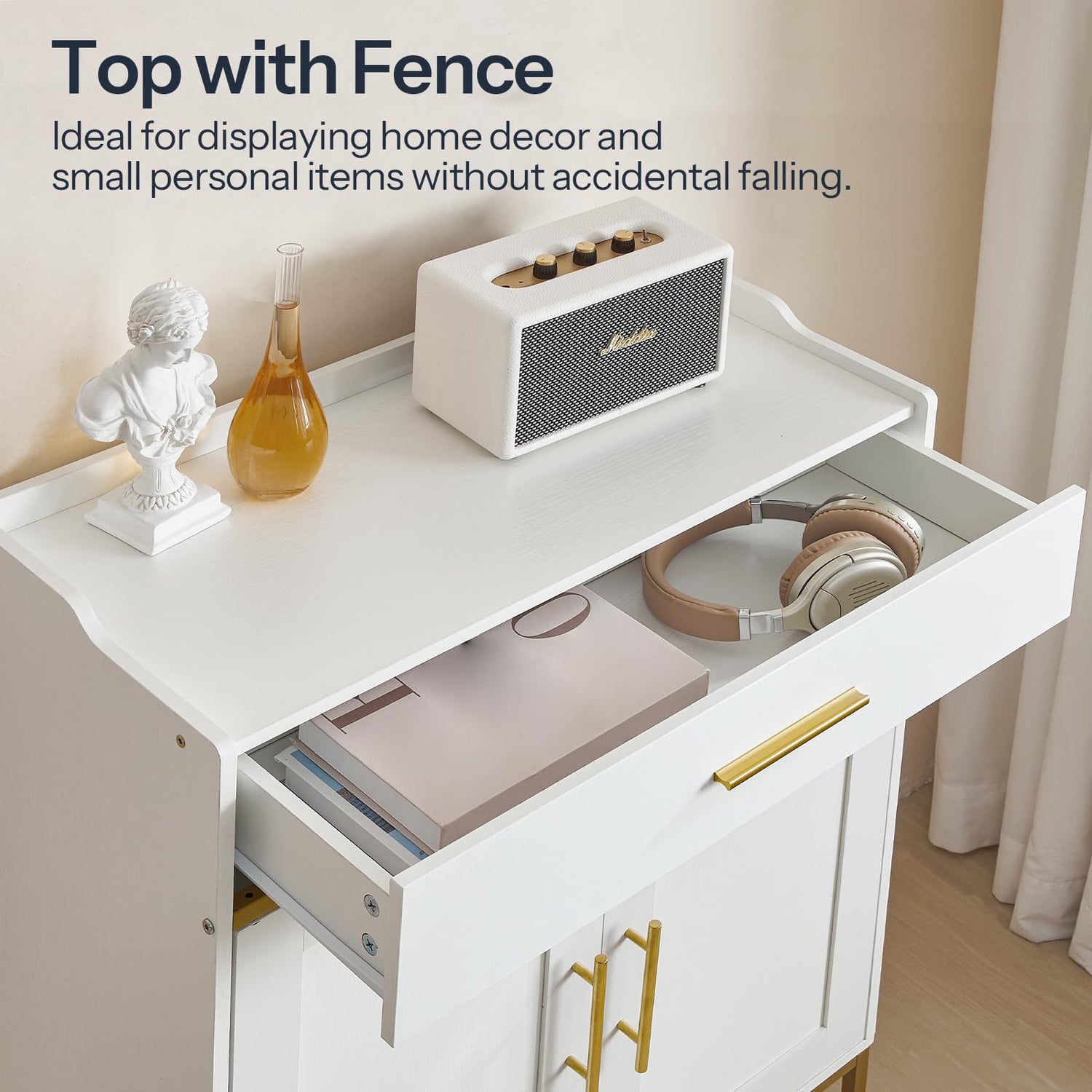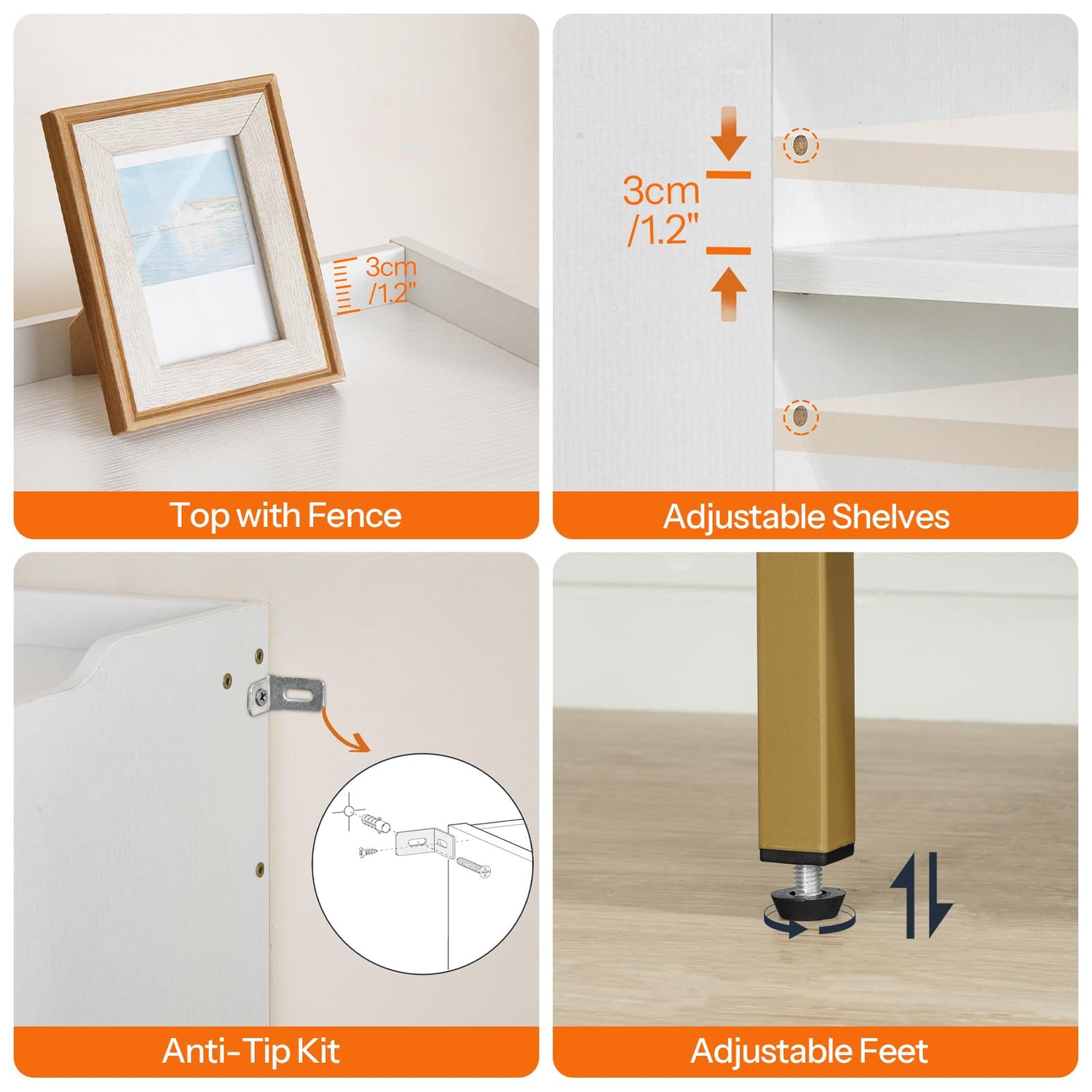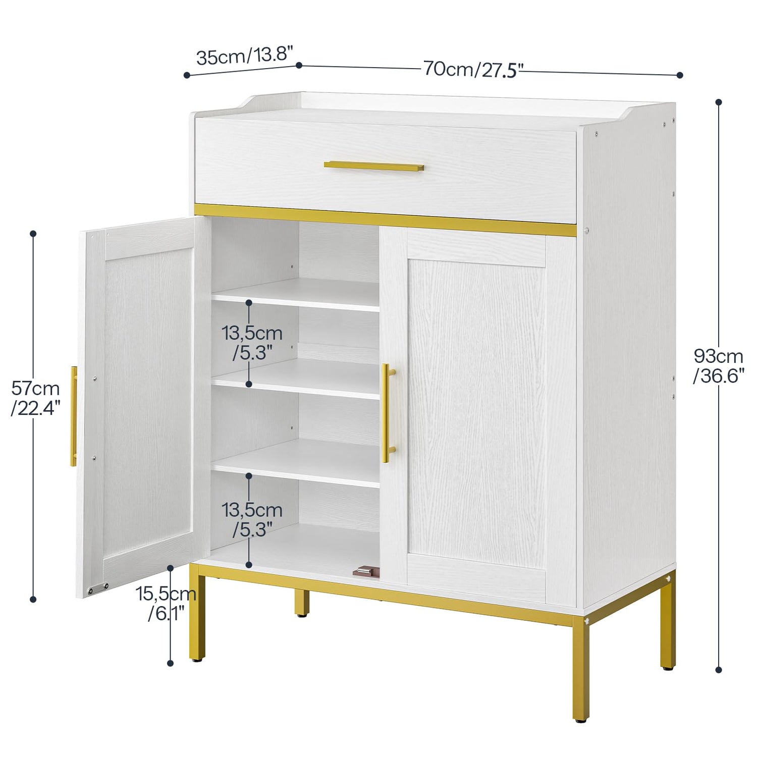 - Elegant Design and Stylish Color Palette: The Shoe Storage Organizer's top fence and groove-patterned door design look beautiful and add a touch of fashion. The collision of classic white and luxurious gold makes it a stunning addition to your home