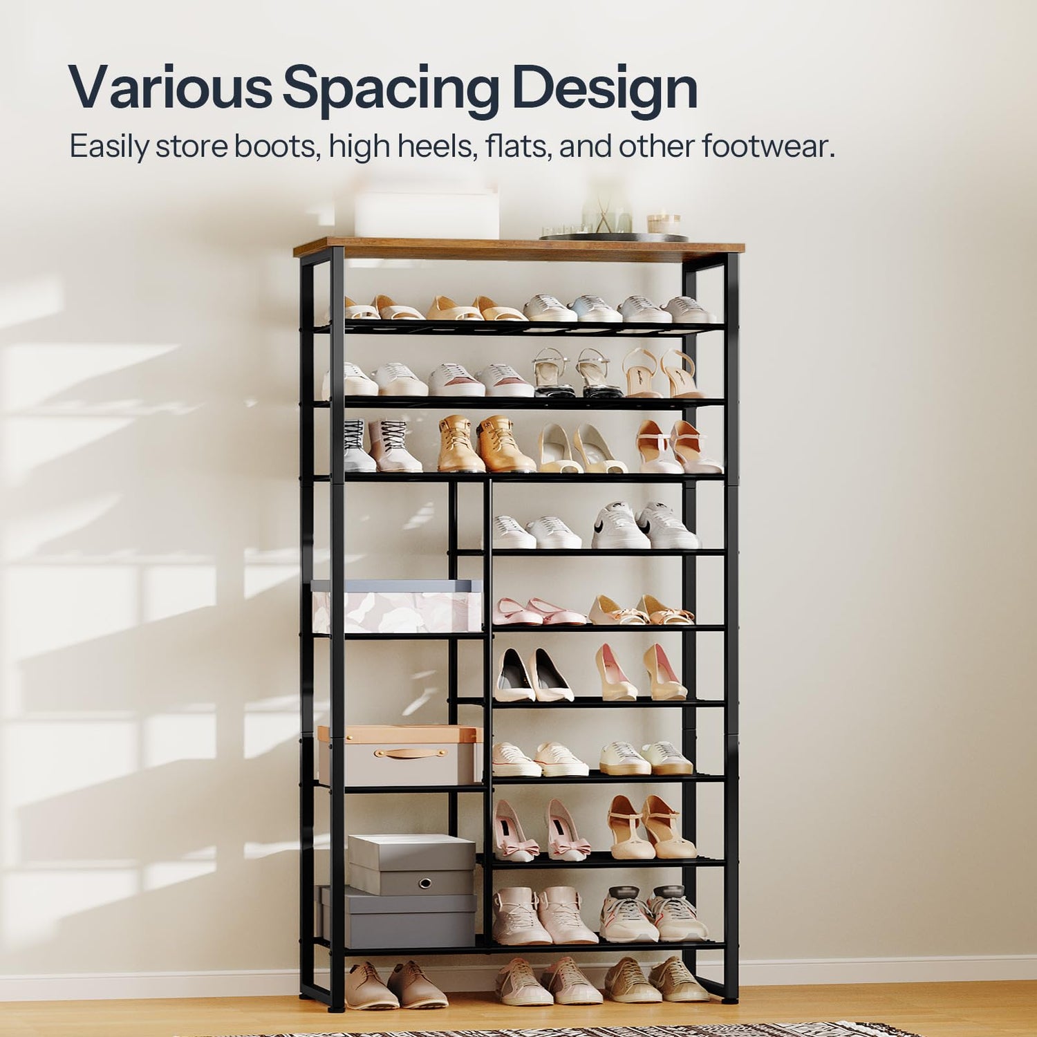 HOOBRO Shoe Rack, 10-Tier Shoe Shelf with Boots Storage, Large-Capacity Shoe Storage Organizer for Entryway, for 27-30 Pairs of Shoes, Hallway, Dorm Room, Rustic Brown and Black BF172XJ01