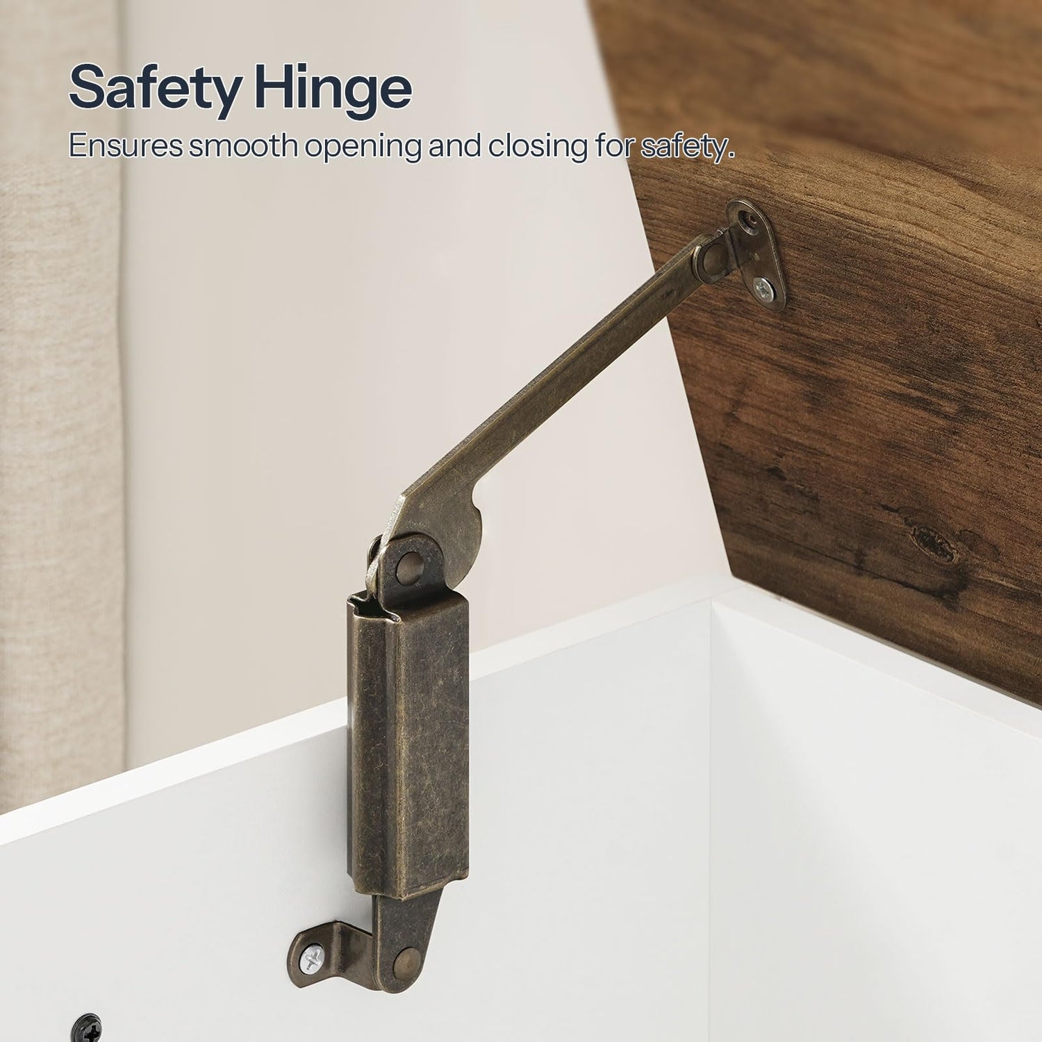 HOOBRO Storage Bench, Toy Box Organizer, Toy Chest with Safety Hinge, Farmhouse Style Storage Chest, 39.3 x 15.7 x 17.7 Inches for Living Room, Bedroom, Entryway, White and Walnut WH26CW01