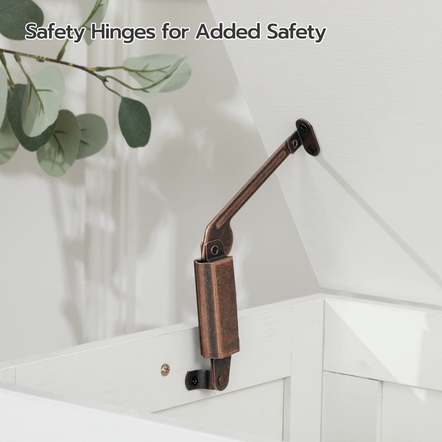HOOBRO Storage Chest, Retro Toy Box Organizer with Safety Hinge, Sturdy Entryway Storage Bench, Wooden Look Accent Furniture, Easy Assembly, White WT100CW01