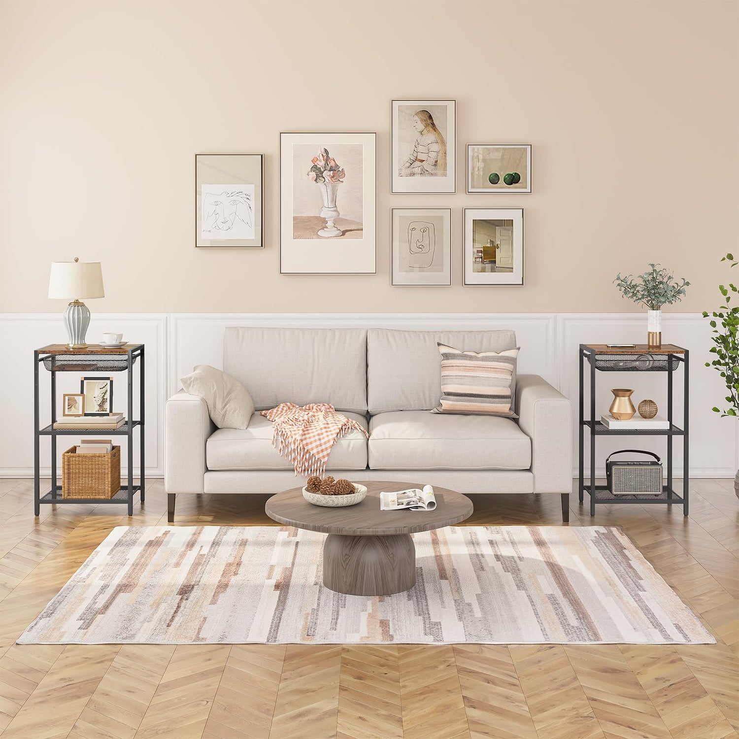 - More Storage Space: This side table offers versatile storage solutions with a top for decorations, phones, or lamps, a sliding metal basket and two mesh shelves for magazines and documents. This design keeps your essentials organized and within reach