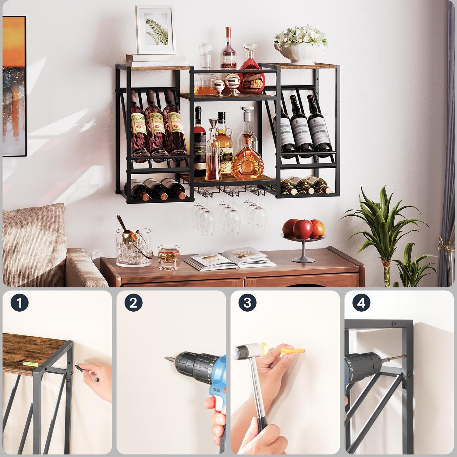 - Setup and Cleaning: Suitable for solid walls only, this wall wine rack has the necessary hardware and instructions for quick assembly. Enjoy the convenience of its smooth surface that effortlessly cleans with a dry rag, restoring its shine in no time