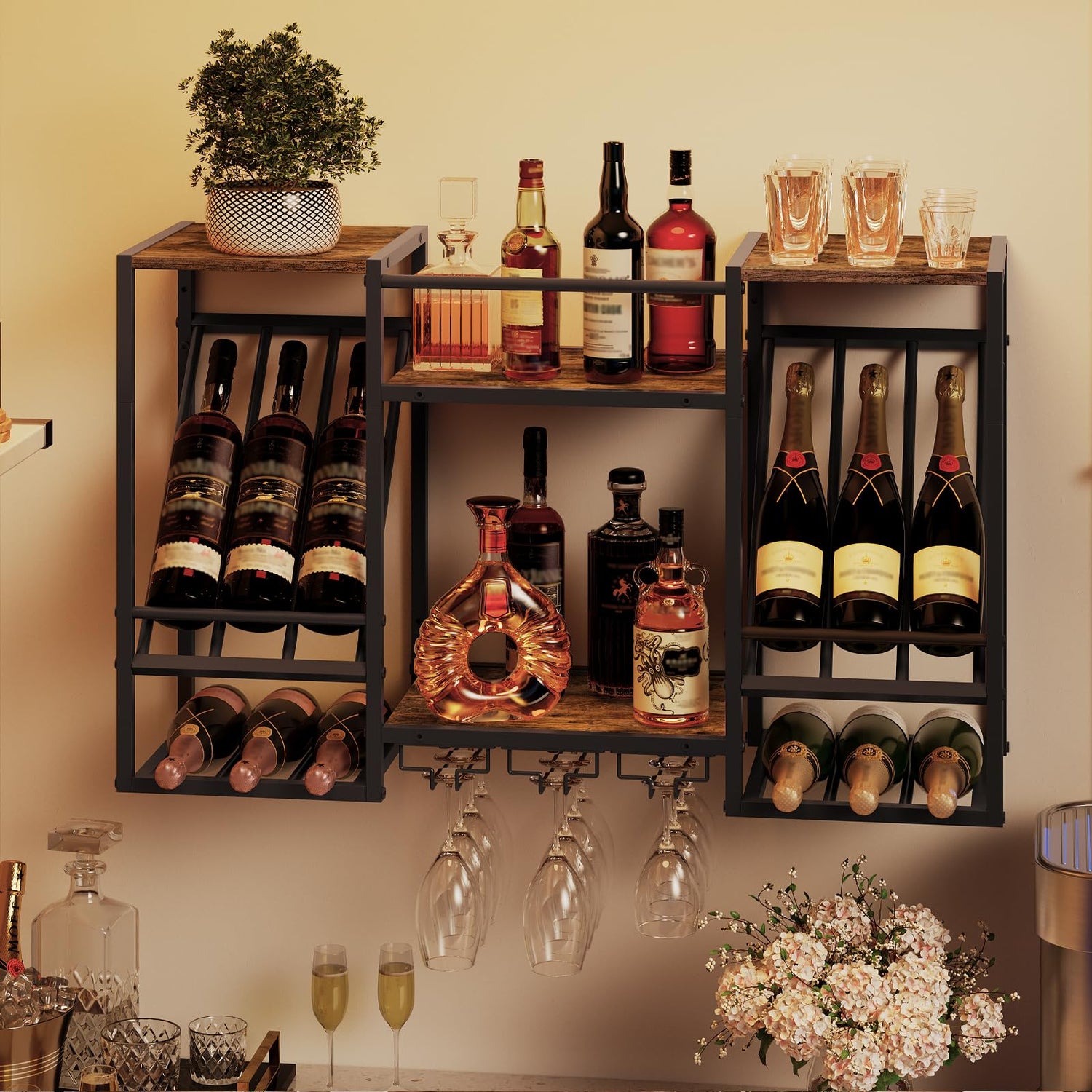 - Versatile Wall Mounted Wine Rack: Easily blending into anywhere like kitchens and home bars, this 3-tier wall wine rack stores your vintages with enough display zone. From bottles to glasses or vases, all can find their places while enhancing the overall ambiance