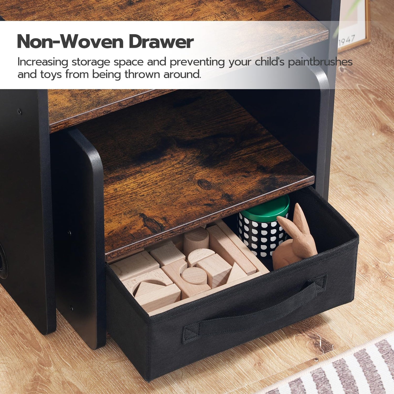 - Stackable and Space-Saving: The kids table and chair set can be combined and stored in a corner or under a table when not in use, so it doesn't take up any public space in your home. The compact size helps make your room look more organized