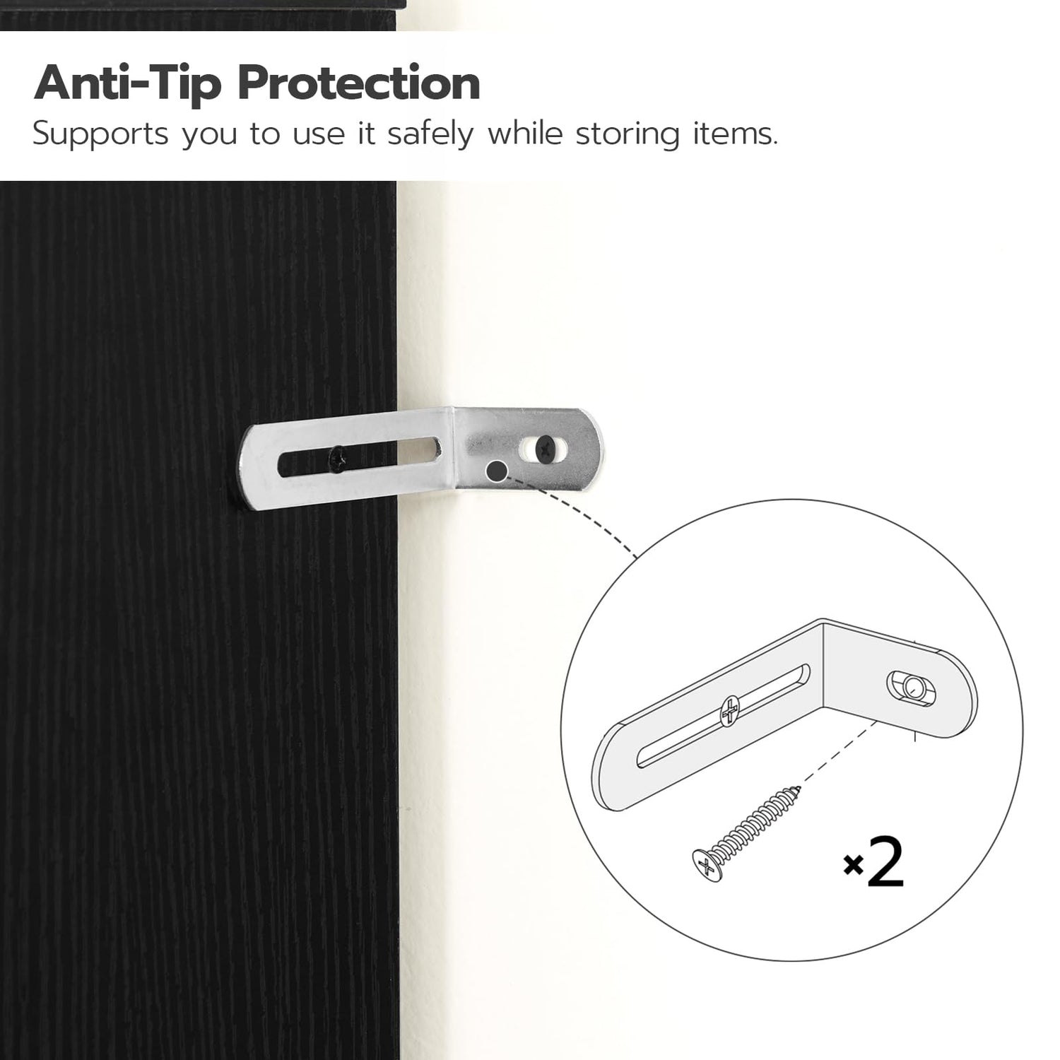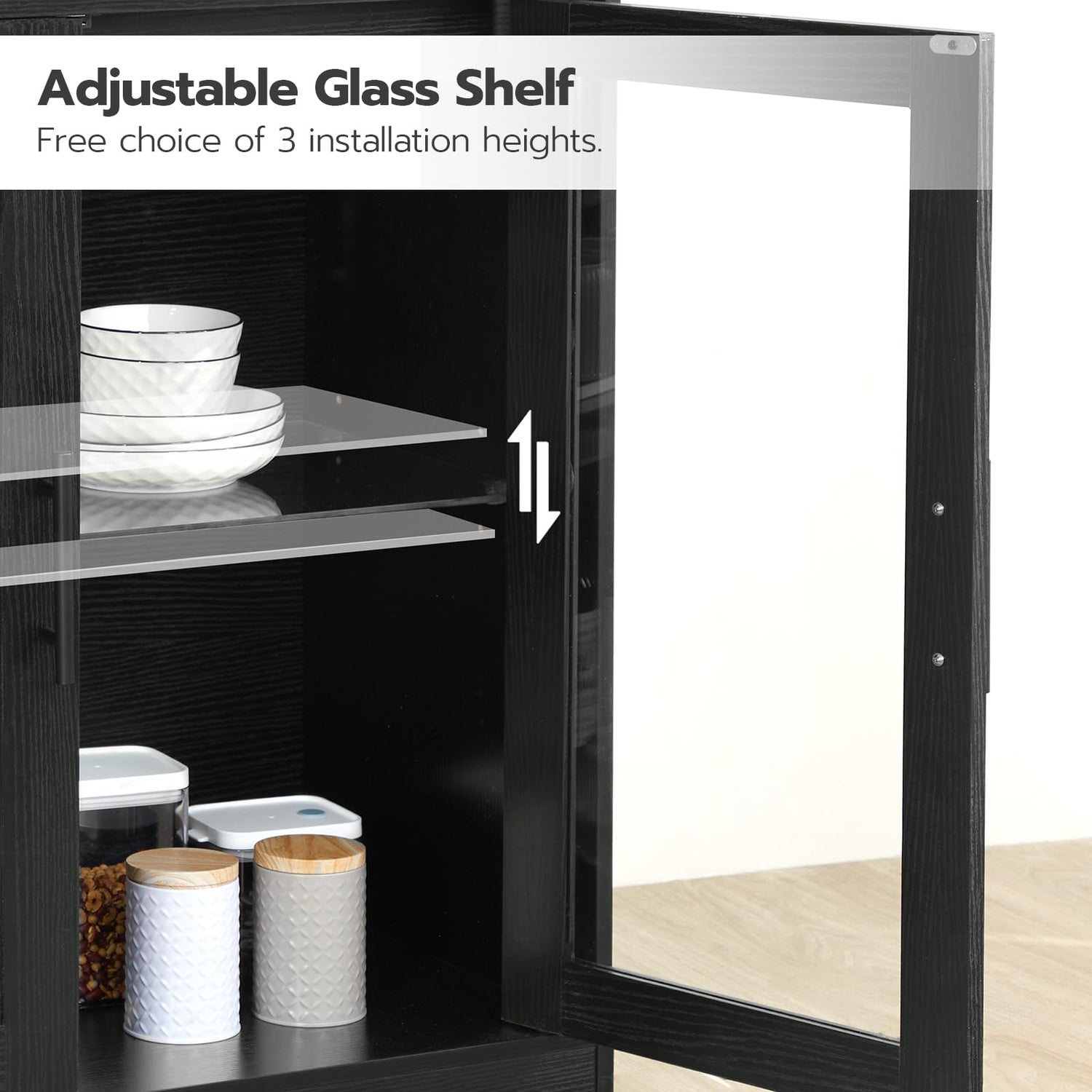 - Rugged and Durable: The quality particleboard and tempered glass cast this sturdy wine cabinet with a strong load capacity. The anti-tip kit allows you to secure the bar cabinet against the wall and to safely store your beloved wines, beverages, etc