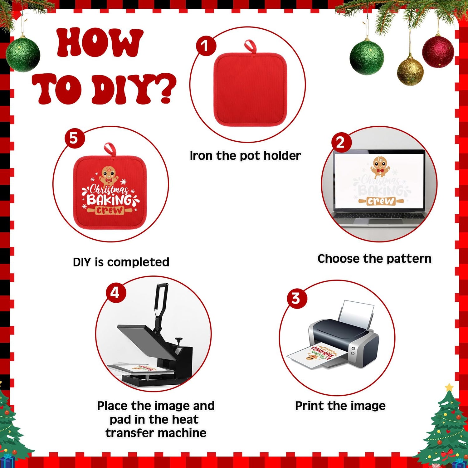 - Personalized Sublimation Printing: unleash your creativity with these pot holders and heat gloves for sublimation that allow for sublimation printing; Transfer your chosen image onto these mitts and holders using a heat press machine for a personalized set; Especially suitable as a unique Christmas gift, the classic red color will enhance your chosen design beautifully