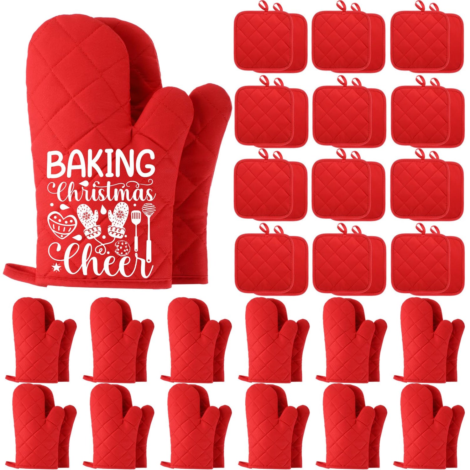 Hoolerry 24 Pcs Blank Sublimation Oven Mitts Set Sublimation Pot Holders Bulk DIY Heat Resistance Oven Gloves with Hanging Loops Pads for Christmas Kitchen Baking Gifts (Red)
