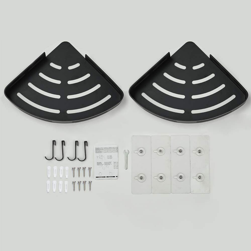 - [Multi-installing] 2 pack drill free bathroom shelf with 4 hooks to help you save more space.You can make the corner caddy self adhesive or drill it on the wall. Just take the way you like.
