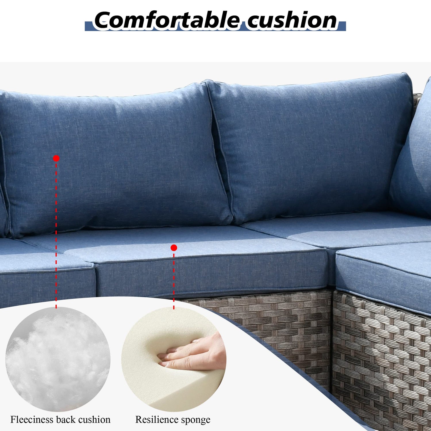 HOOOWOOO 13 Piece Modular Patio Outdoor Sectional Furniture Set with Gas Propane Fire Pit Table,Wicker Conversation Sofa Set,Out Door Couch Set with Wide Arm Outside(Denim Blue)