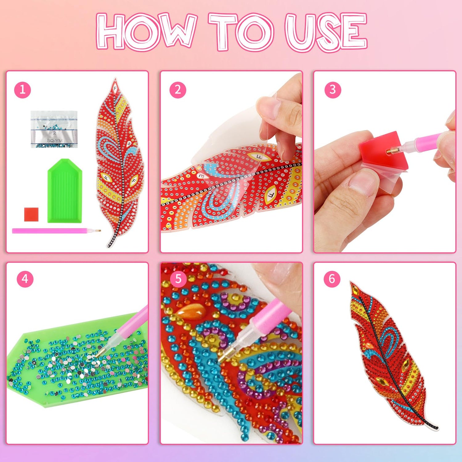 - Easy to Make: Peel off the protective film on the bookmark and stick the rhinestones onto the corresponding positions on the bookmark according to the marked numbers/letters. No glue is required, and even beginners can easily complete the craft by following the instructions