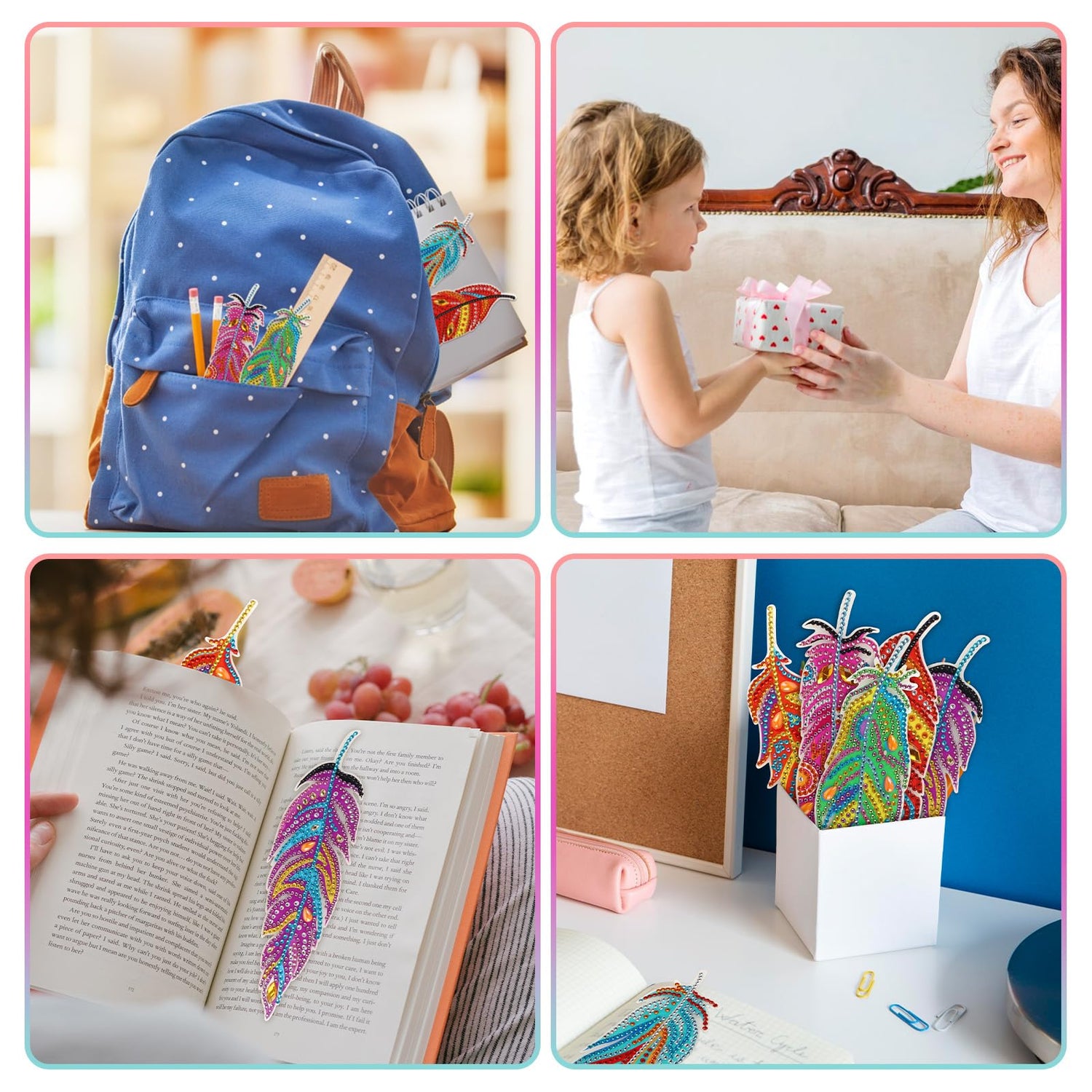 - CHOKING HAZARD - SMALL PARTS. Not for children under 3 years. Feather bookmarks are both beautiful and practical, and can be used as reading markers, classroom prizes, back-to-school gifts, party favors, birthday or Christmas gifts for kids, friends, family members, students, and book lovers