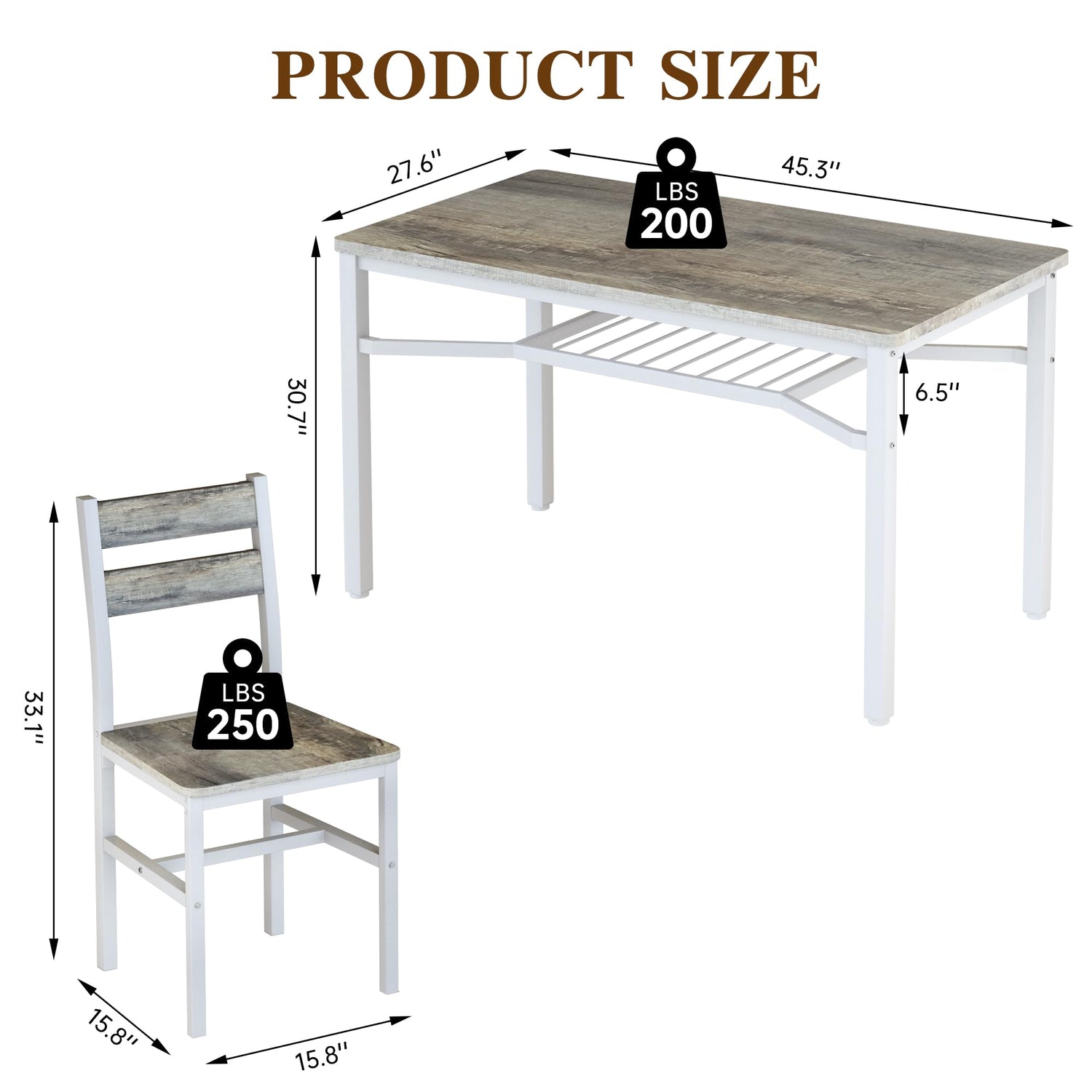 - Product Specifications: Table Dimensions: 45.3''*27.6''*30.7''; Weight Capacity: 200 lbs. Chair Dimensions: 15.8''*15.8''*33.1''; Weight Capacity: 250 lbs. Package Includes: 1 table, 4 chairs.