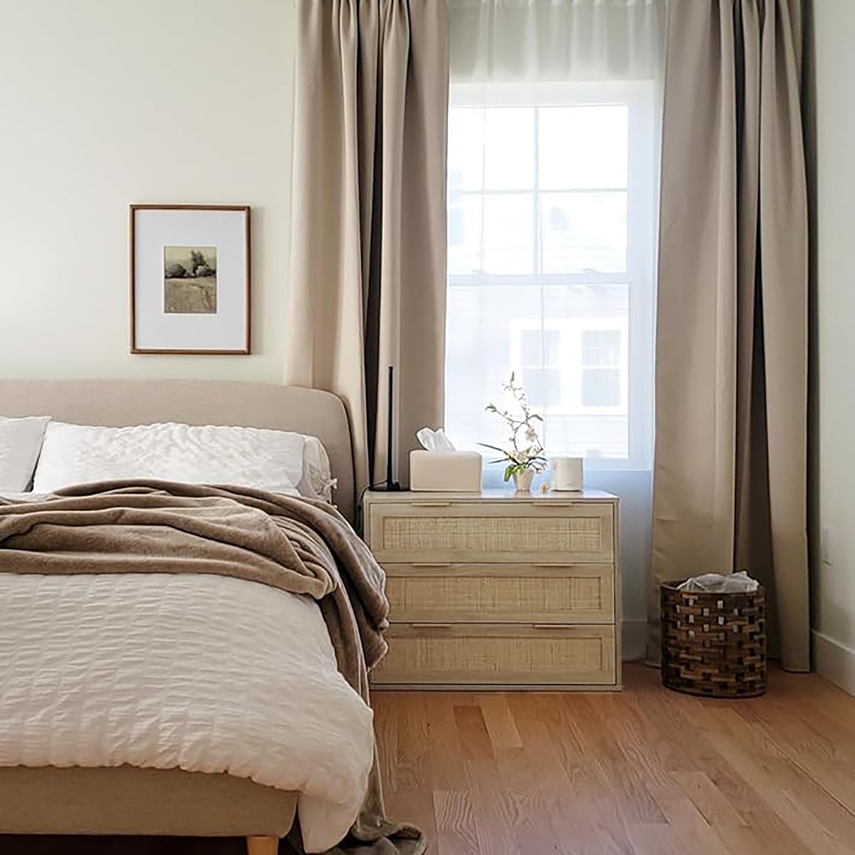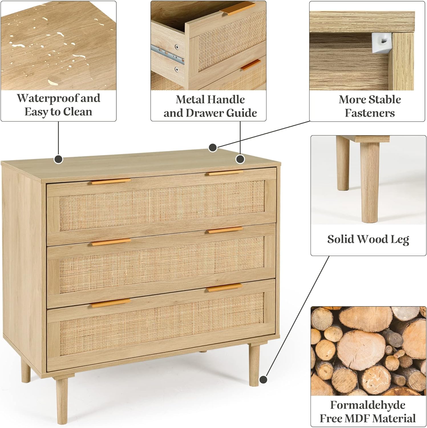 - 〖Modern and Bohemian Element〗-The bedroom Nightstands is equipped with 3 rattan decorated drawers. this unique design is very rare on Amazon.It will bring you a completely different visual experience, In addition, the rattan design is breathable and dehumidifying, which can ensure that the cosmetics and other items you put inside will not melt and damage in hot summer