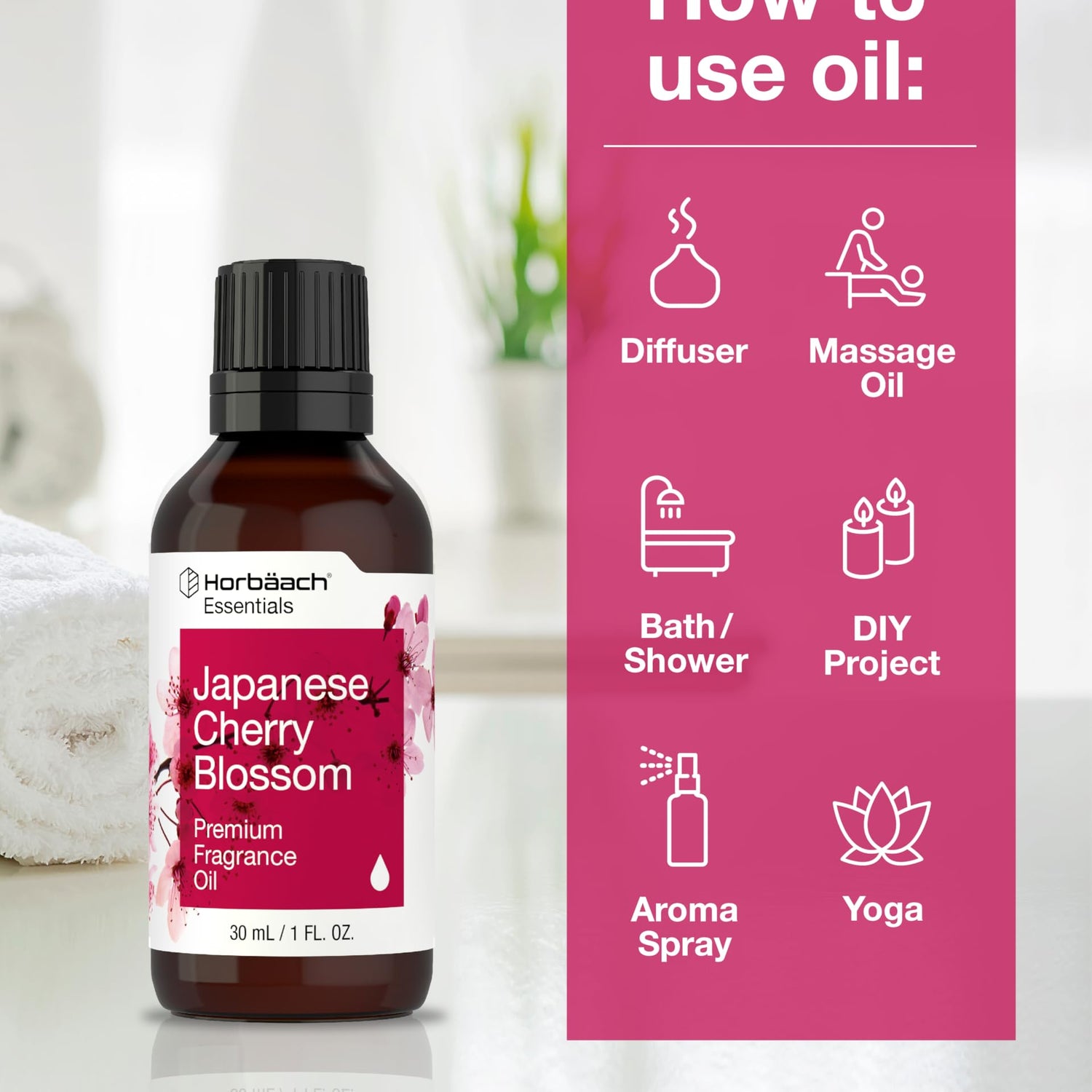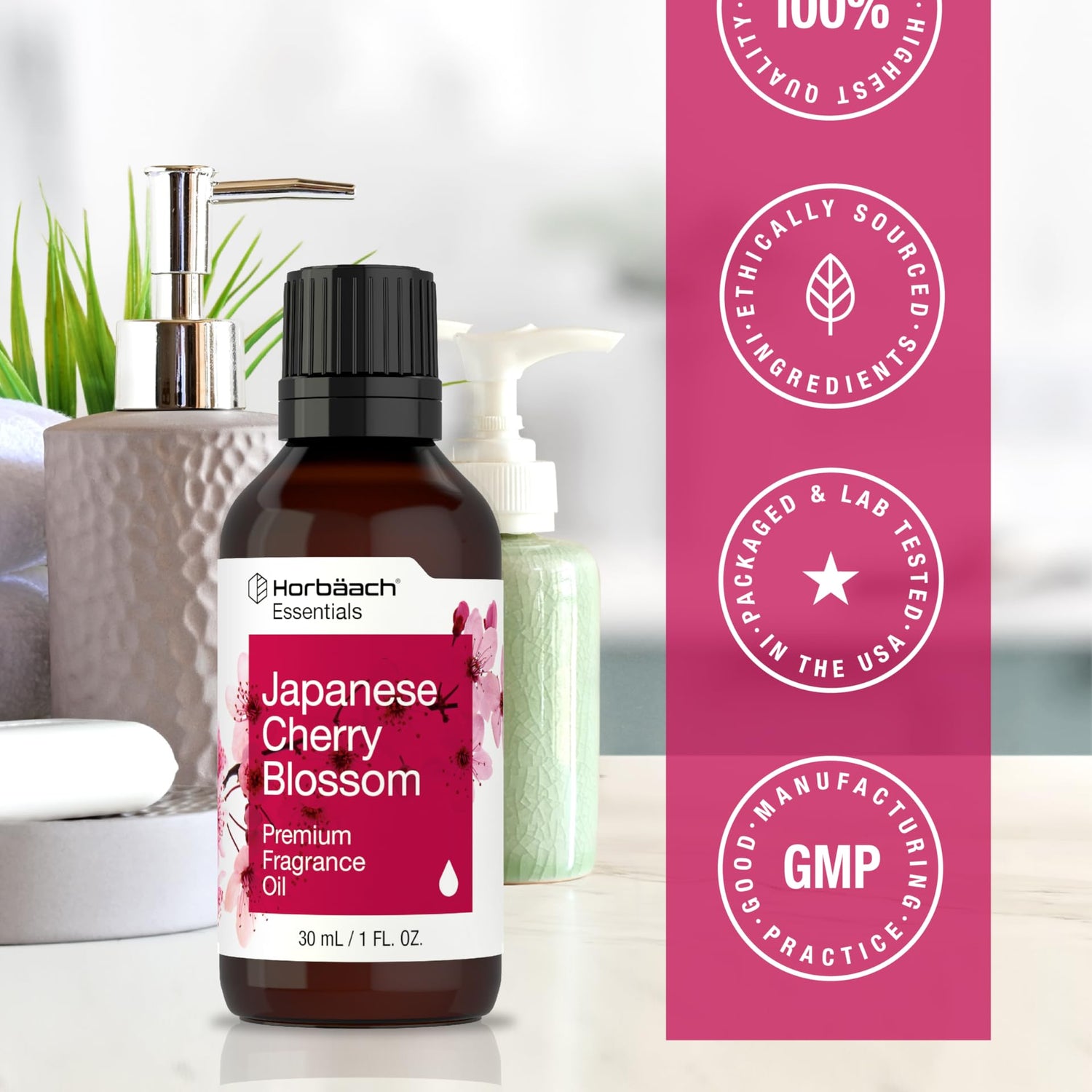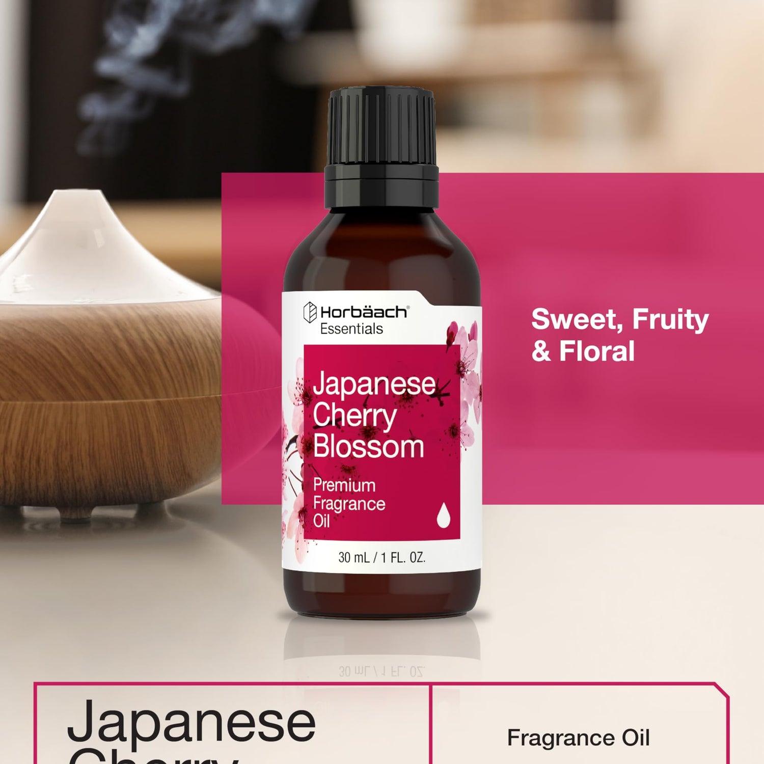Horbäach Japanese Cherry Blossom Fragrance Oil | 1 fl oz (30ml) | Premium Grade | for Diffusers, Candle and Soap Making, Aroma Sprays, DIY Projects & More | Packaging May Vary