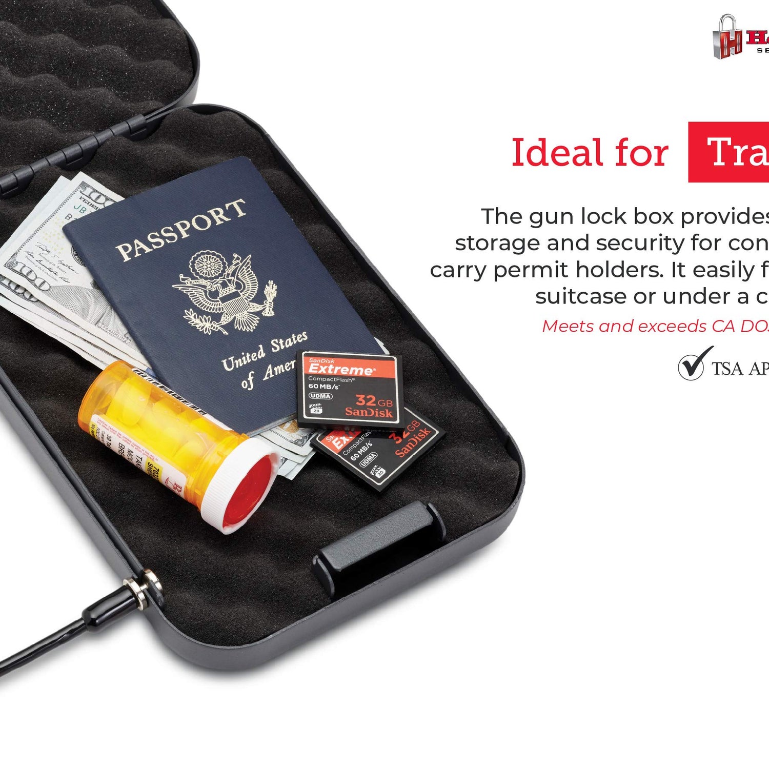 - Ideal for Travel – The gun lock box provides pistol storage and security for concealed carry permit holders. It easily fits in a suitcase or under a car seat. Meets TSA airline firearm guidelines. Foam interior protects valuable contents