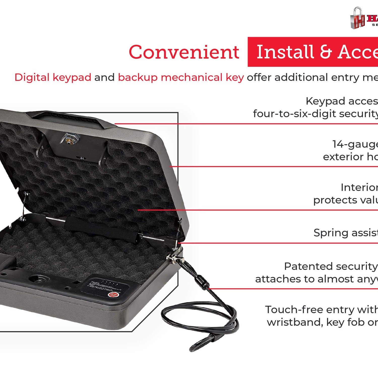 - Convenient, Safe and Ready - Digital keypad and backup mechanical key offer additional entry methods. AC and battery power ensure the handgun lock box is an effective gun storage 24/7. Exceeds ASTM International safety standards for child and pry resistance