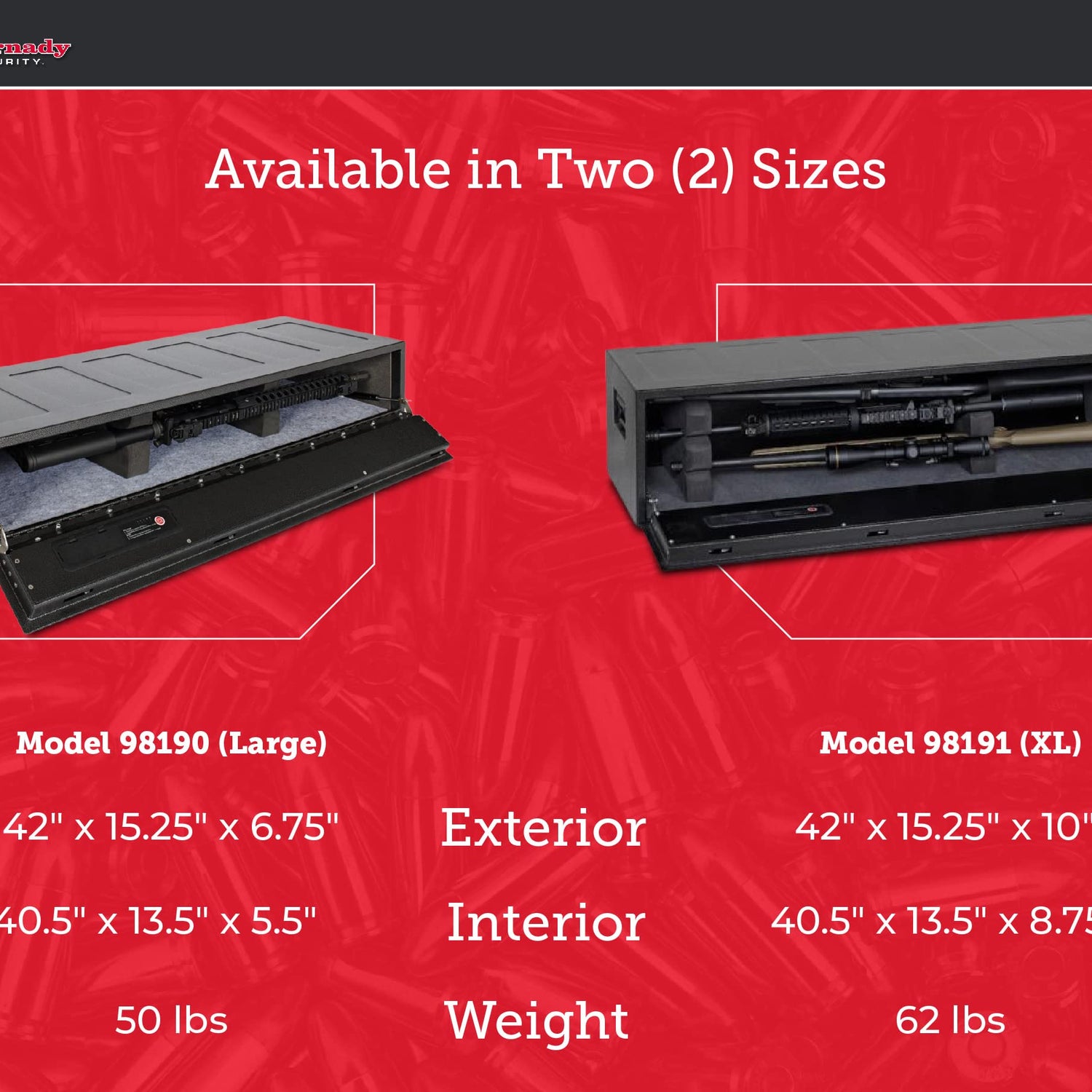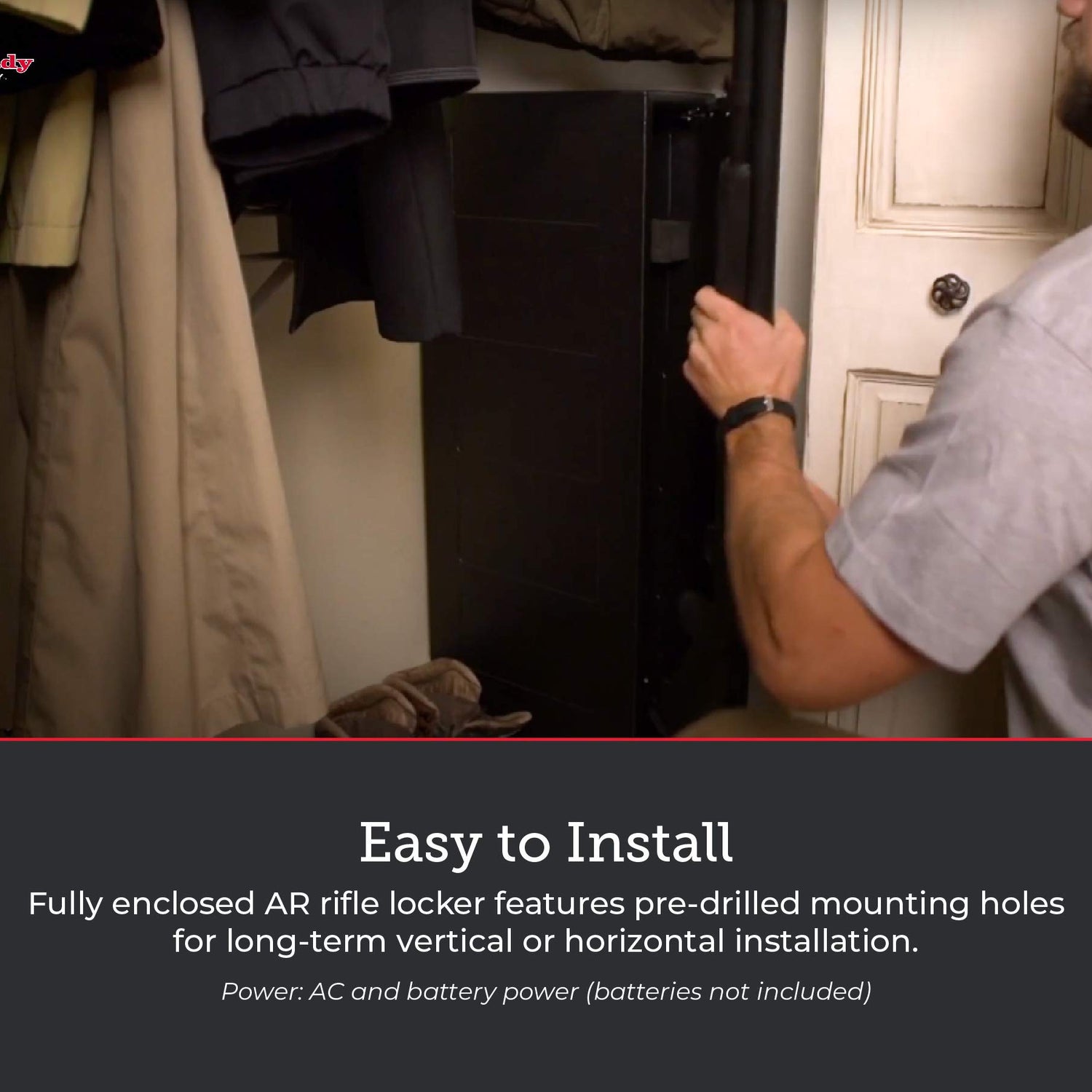- SAFE, READY, & EASY TO INSTALL - this fully enclosed design 50lb AR rifle locker features pre-drilled mounting holes for vertical or horizontal mount, spring loaded door, AC and battery powered, keypad access, and 2 circular barrel keys ready to go. Exterior: 42” x 15.25” x 6.75”/Interior: 40.5" x 13.5" x 5.5"
