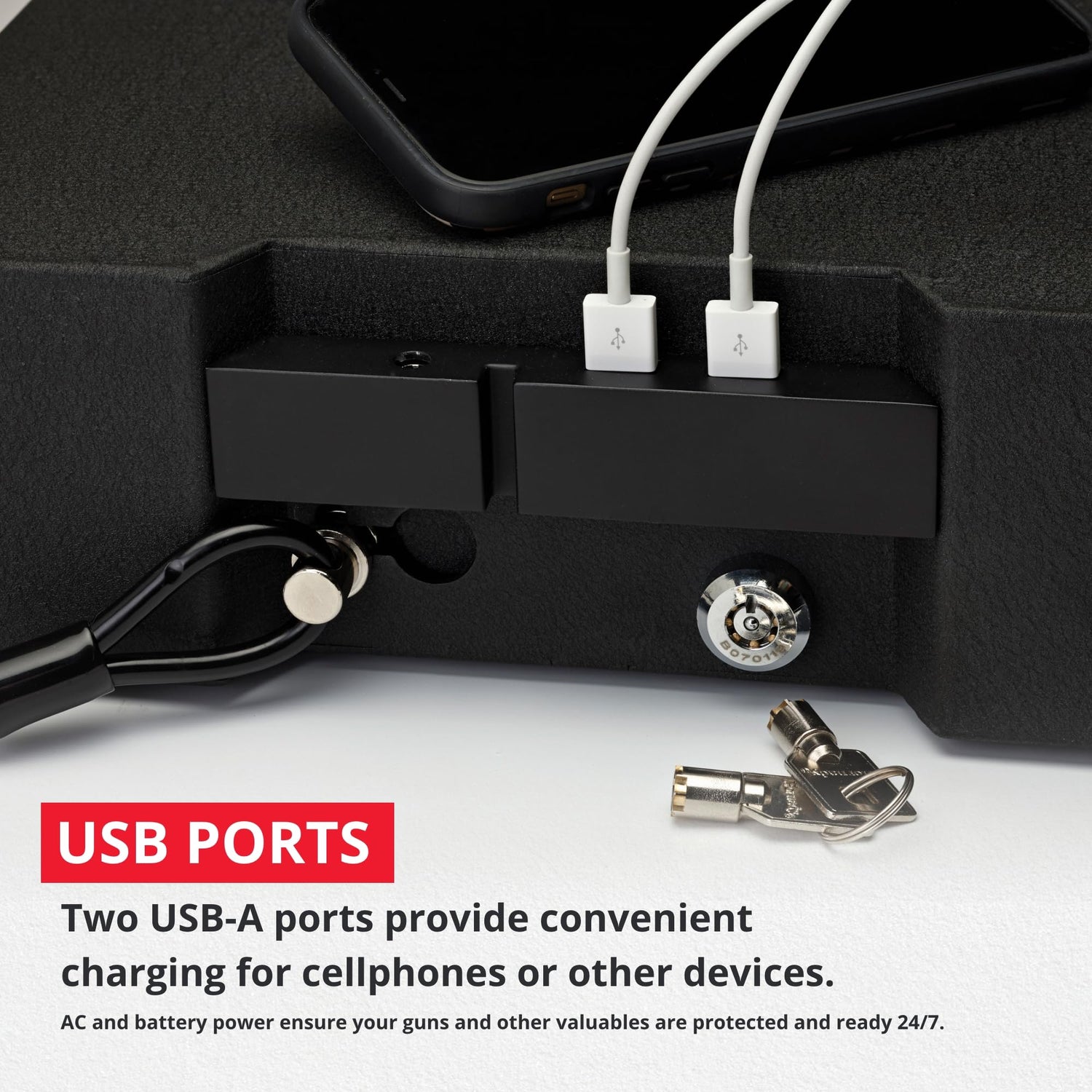 Hornady Rapid Safe Night Guard – Nightstand Gun Safe with RFID Reader, Clock, USB Ports – RFID Safe for Fast, Multiple Method Entry – Includes Rapid Safe, 3 Methods of Entry and Security Cable
