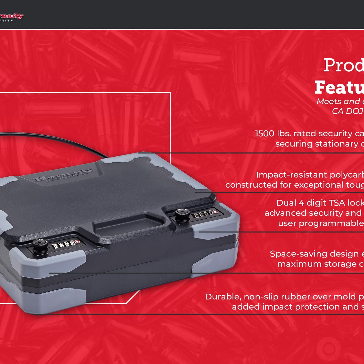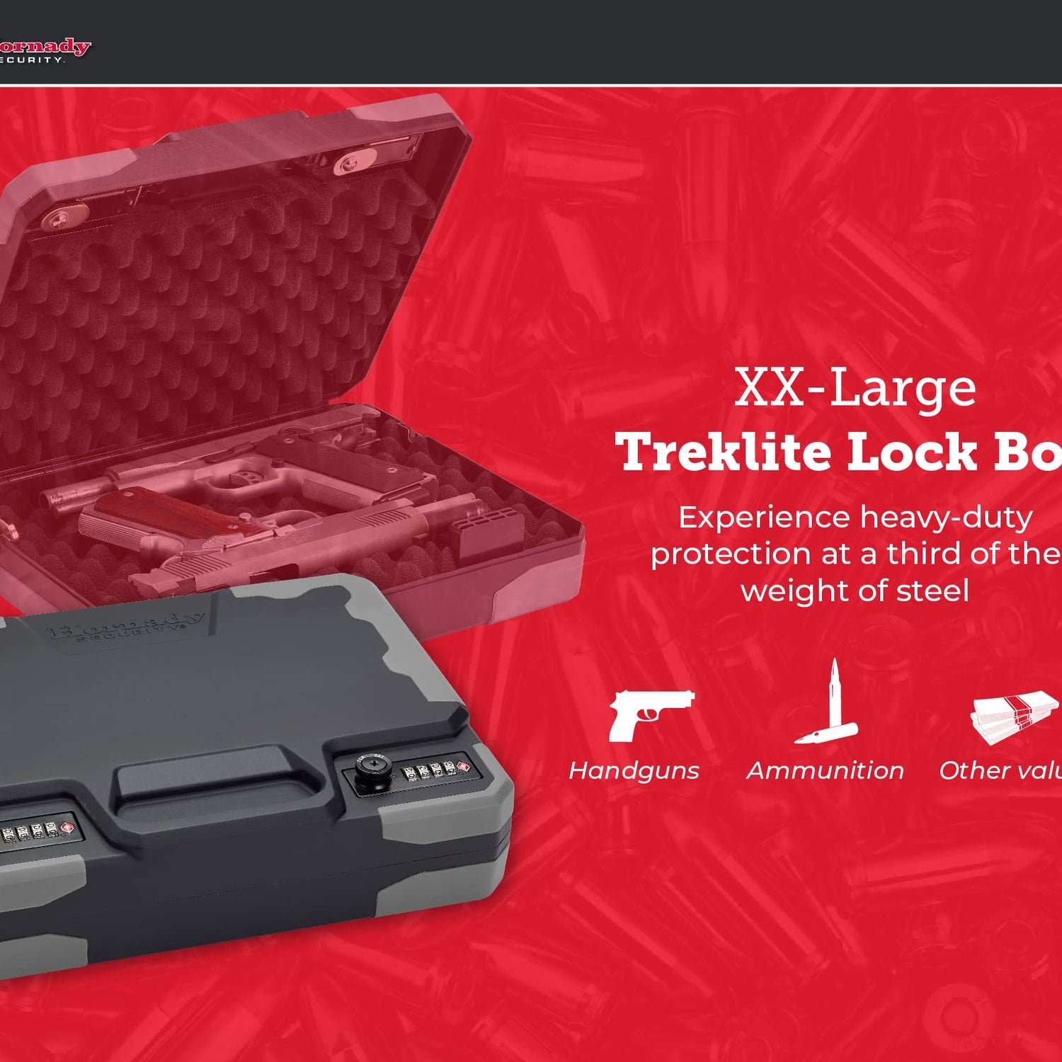Hornady Treklite Combination Lock Box XXL, 95260 - Travel Safe Lightweight Gun Lock Box with Dual 4-Digit TSA Combination Locks - Protects Firearms, Ammo, & Valuables - 12.2 x 10.1 x 3.3 Inches