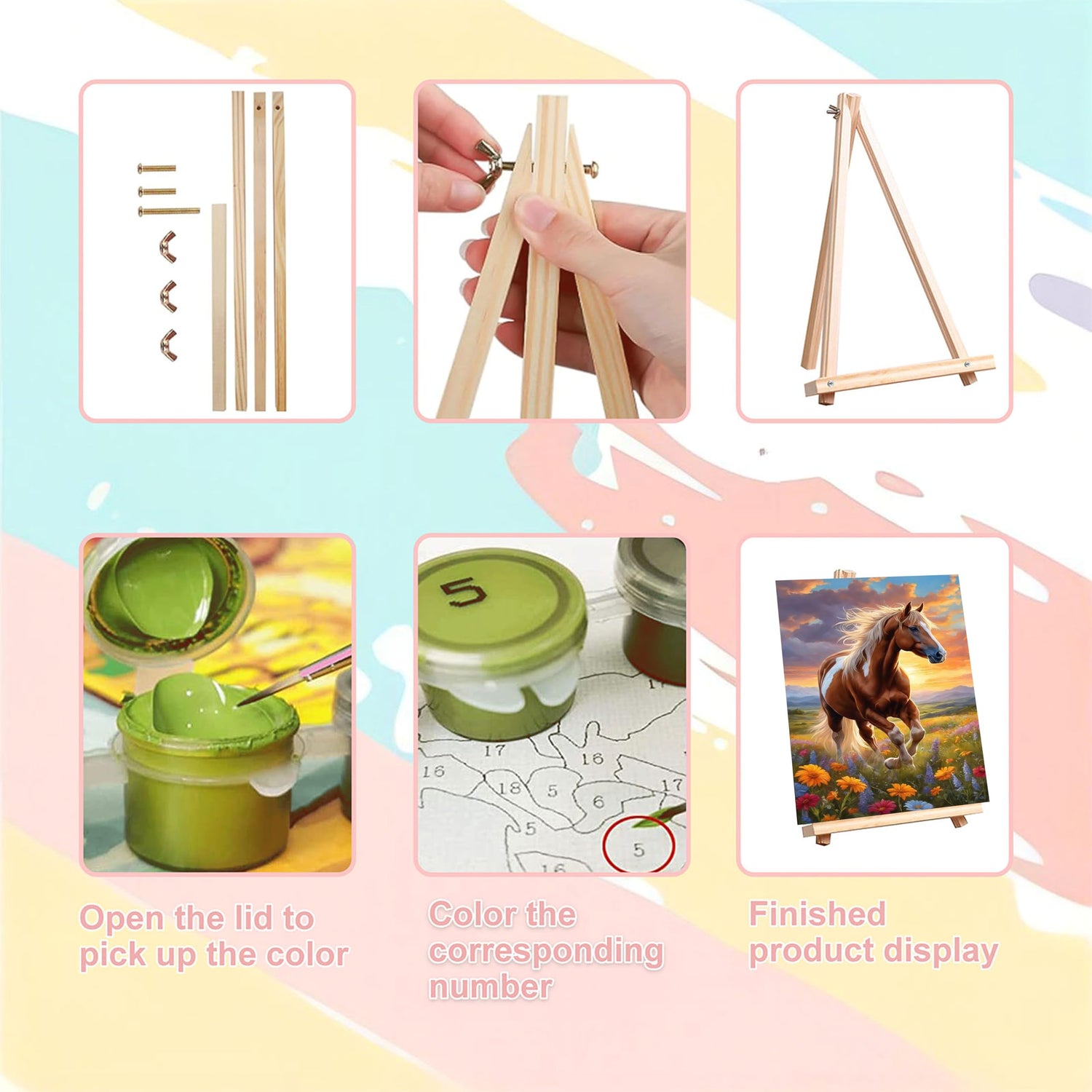 Horse Paint by Numbers for Adults with Framed Canvas-with Wooden Easel,Paint by Number on Canvas Animals,DIY Acrylic Oil Painting Kits with Brushes Nice Gift Box for Home Wall Decor(12x16inch)
