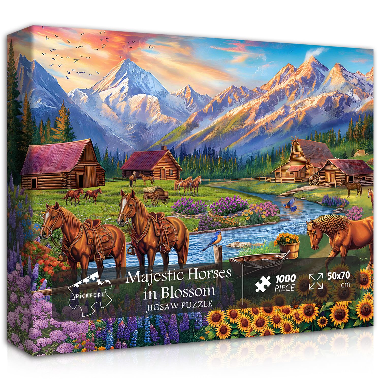 Horse Puzzles for Adults 1000 Piece, Nature Landscape Puzzles Flower Mountain Scenery, Challenging Jigsaw Puzzles with Animals Scenic