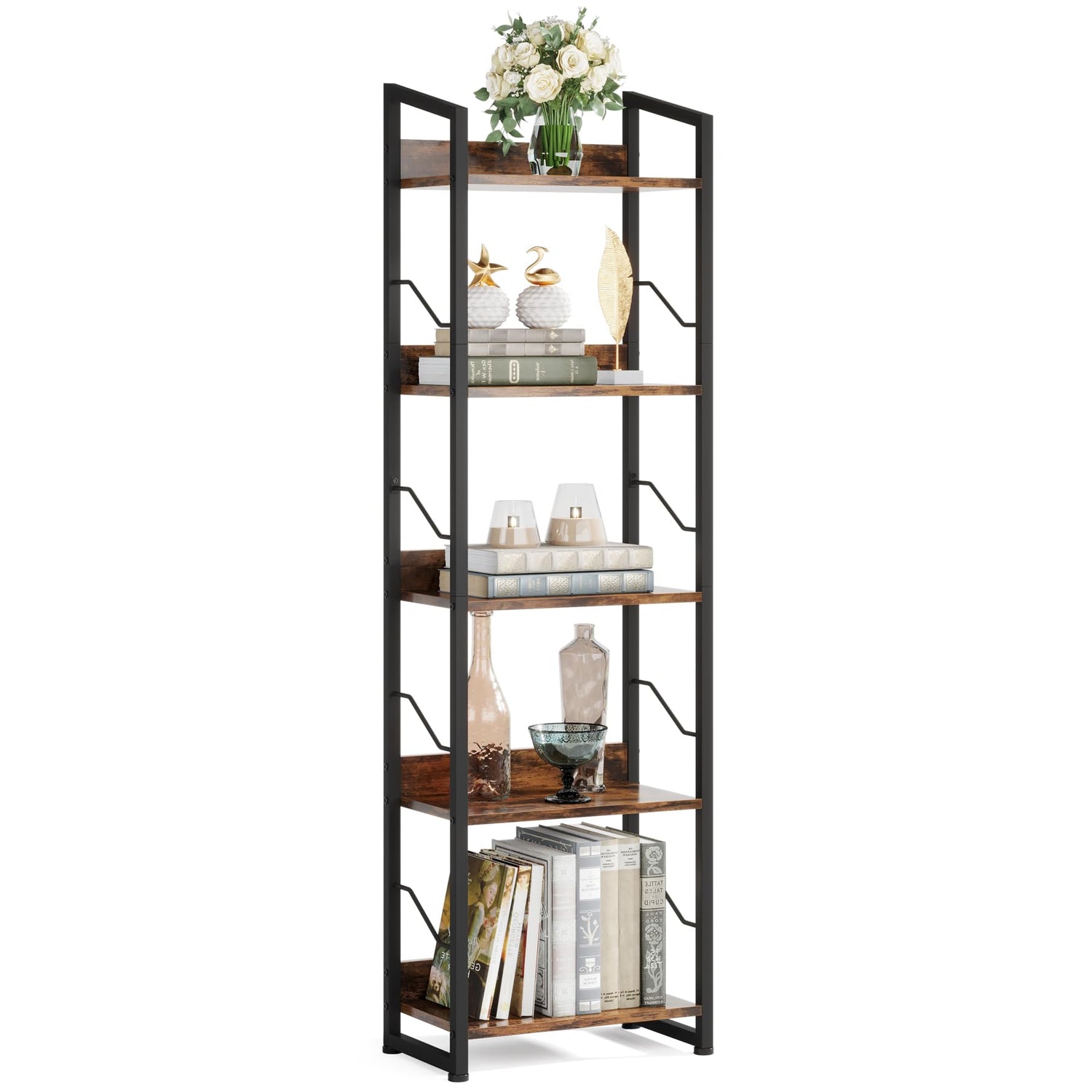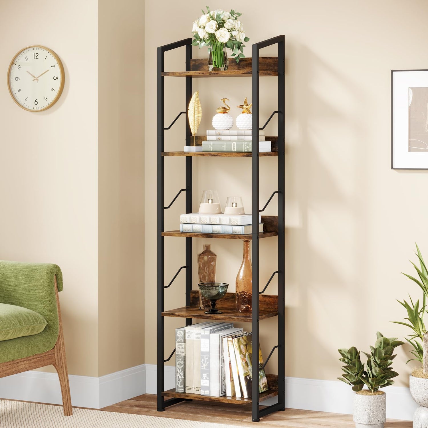 Hosfais 5-Tier Rustic Brown Narrow Bookshelf with Edge Protection for Home and Office