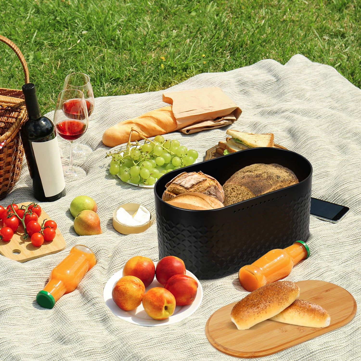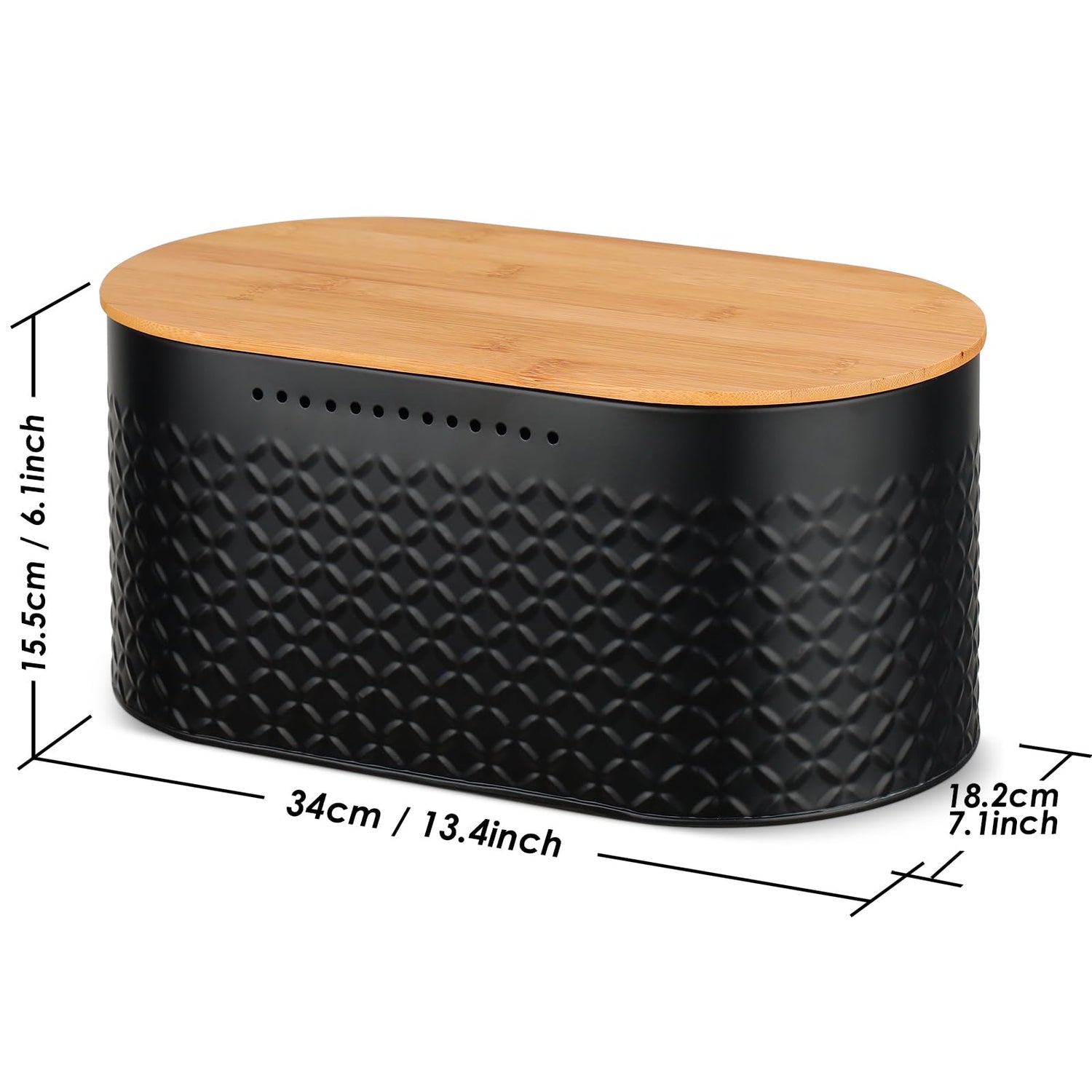 Hossejoy Metal Bread Box with Reversible Bamboo Cutting Lid, Bread Storage Container for Kitchen Countertop, Modern Bread Bin Holder Breadbox (Black)