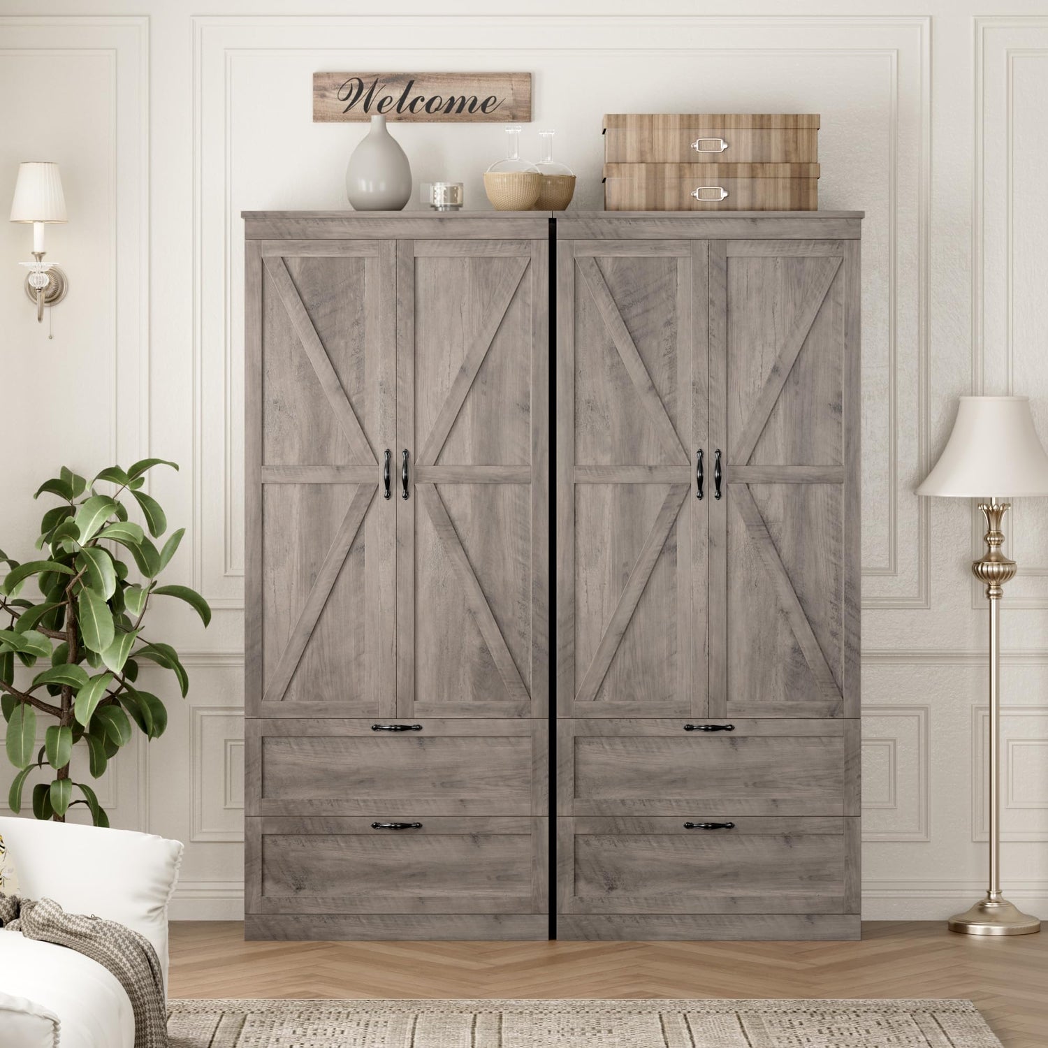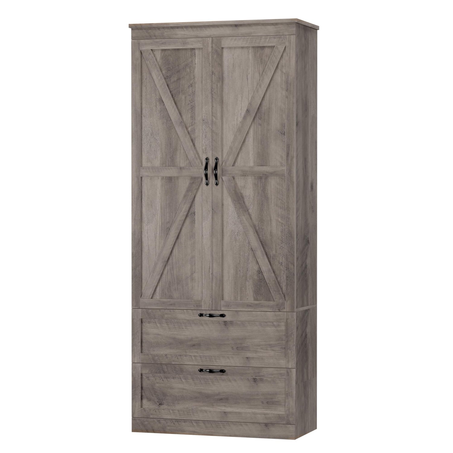 HOSTACK 70" Tall Kitchen Pantry Storage Cabinet, Barn Doors Pantry Cabinet with Drawers and Adjustable Shelf, Modern Farmhouse Storage Cabinet for Kitchen, Dining Room, Living Room, Bathroom, Ash Grey