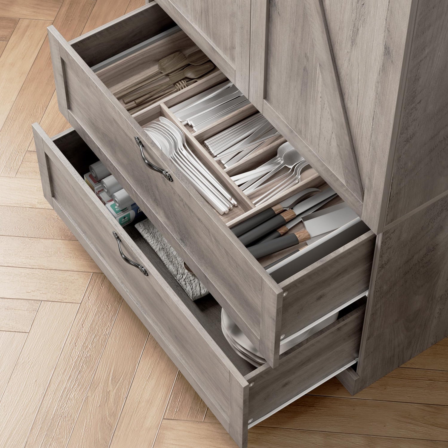 - Large Storage Space: Featured a large double doors cabinet with 2 fixed shelves and 1 adjustable shelf with which you can customize the space for items in different sizes, and two large drawers for other kitchen overflows, the pantry cabinet is exactly the storage master you're looking for