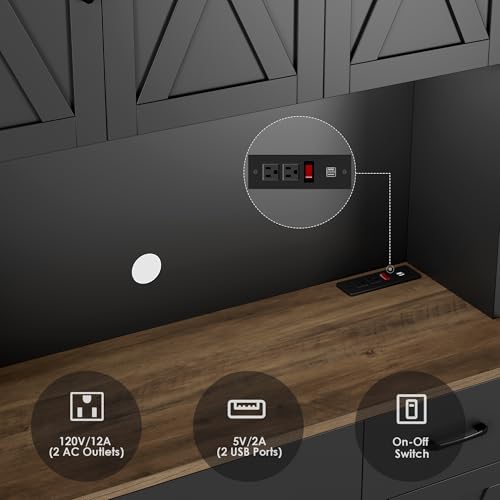 - Charging Station & Cable Management: The kitchen pantry cabinet is specially designed with outlets to make life easier, your daily household appliances can have quick power connection. Moreover, a wire hole still exists for your extra needs