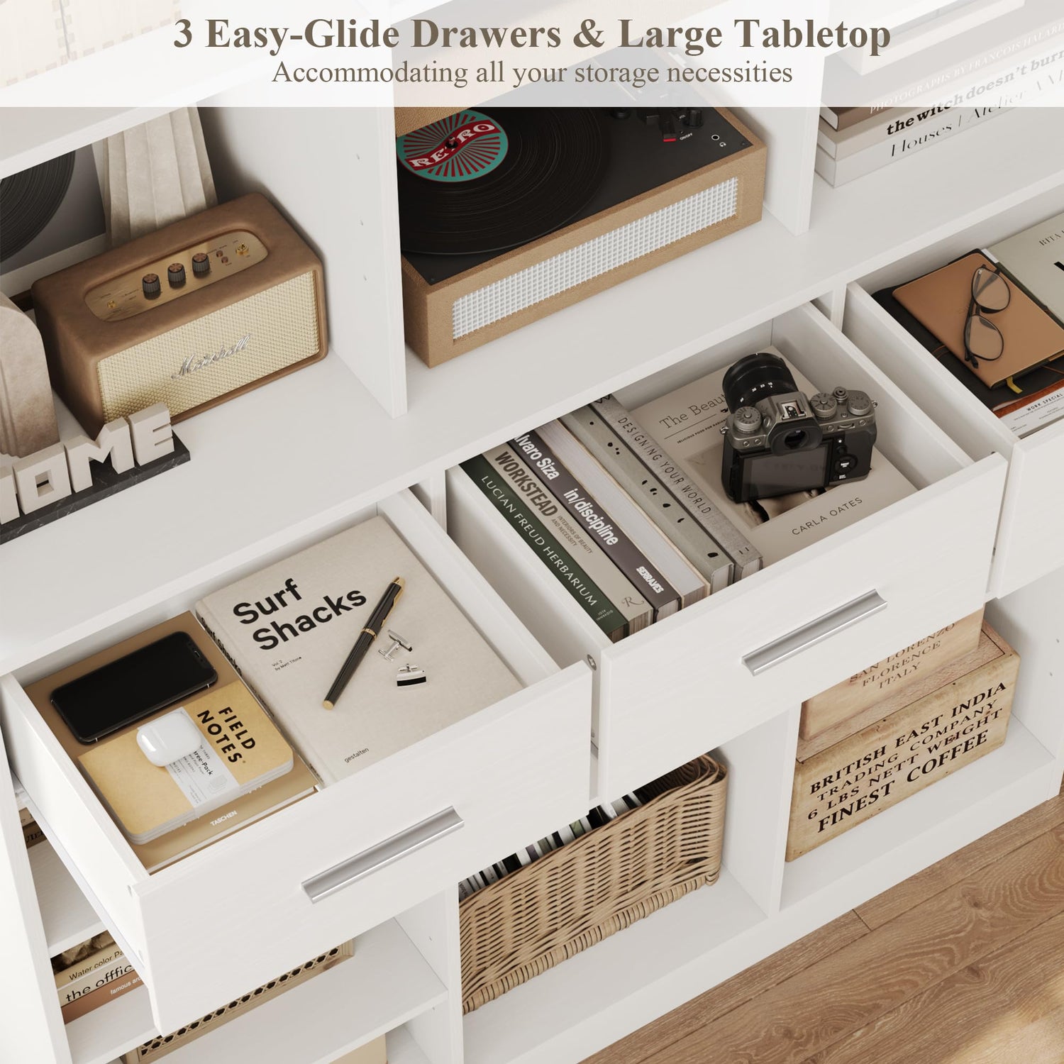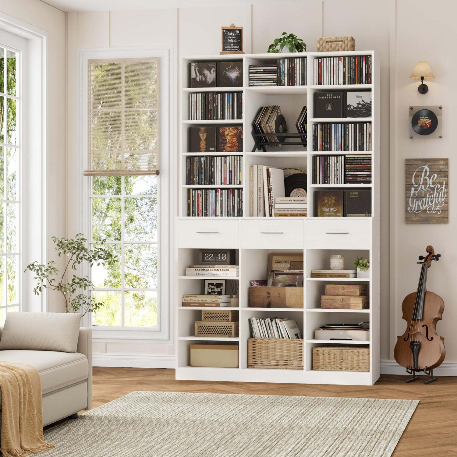 - Storage Master: Featuring an extra tall space-saving structure with 3 column width storage, generous number of flexible shelvings with 3 easy-glide deep drawers, this adjustable bookshelf keeps things organized and tidy while seamlessly enhancing vertical storage space