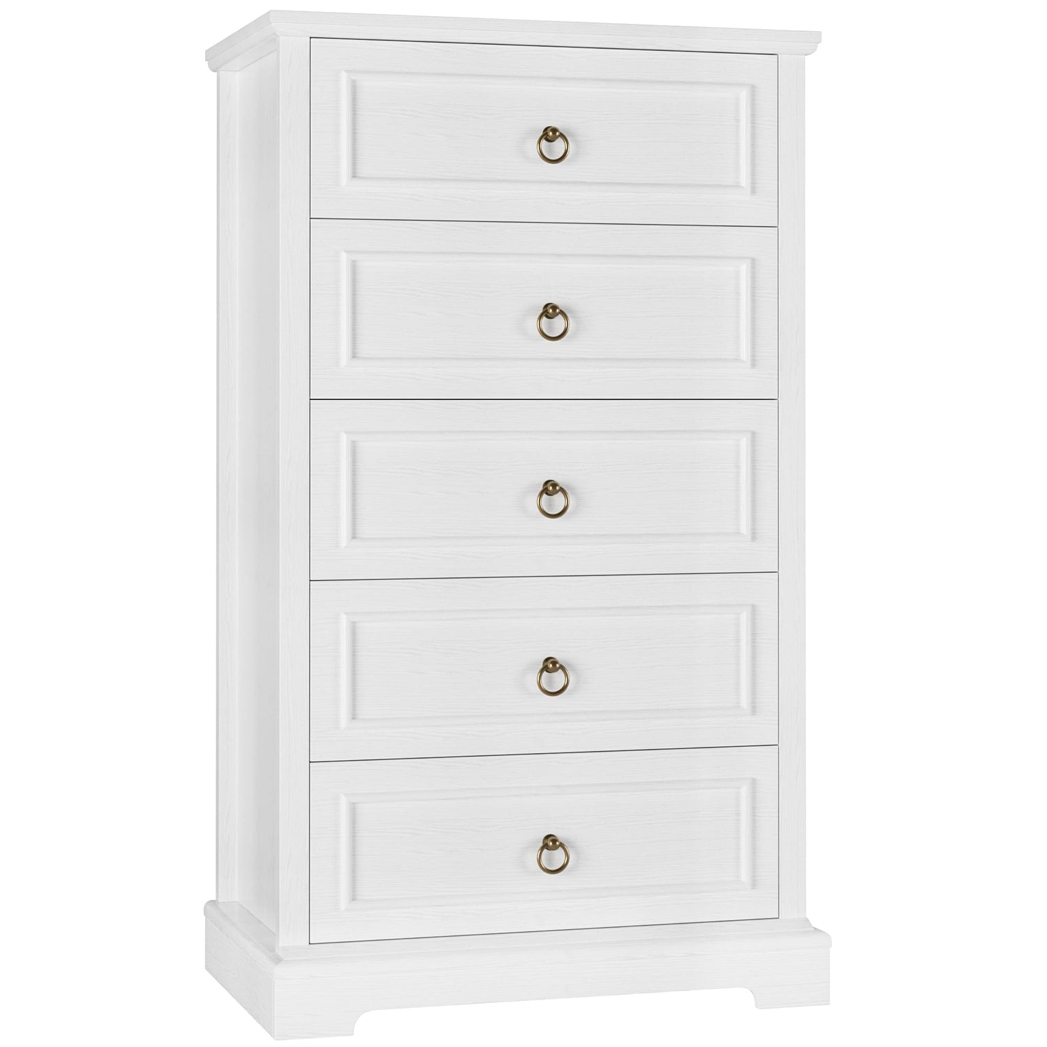HOSTACK Dresser for Bedroom, 44" Tall Dresser with 5 Drawers, White Chest of Drawers with Storage, Modern Farmhouse Wood Dressers for Closet, Living Room, Hallway